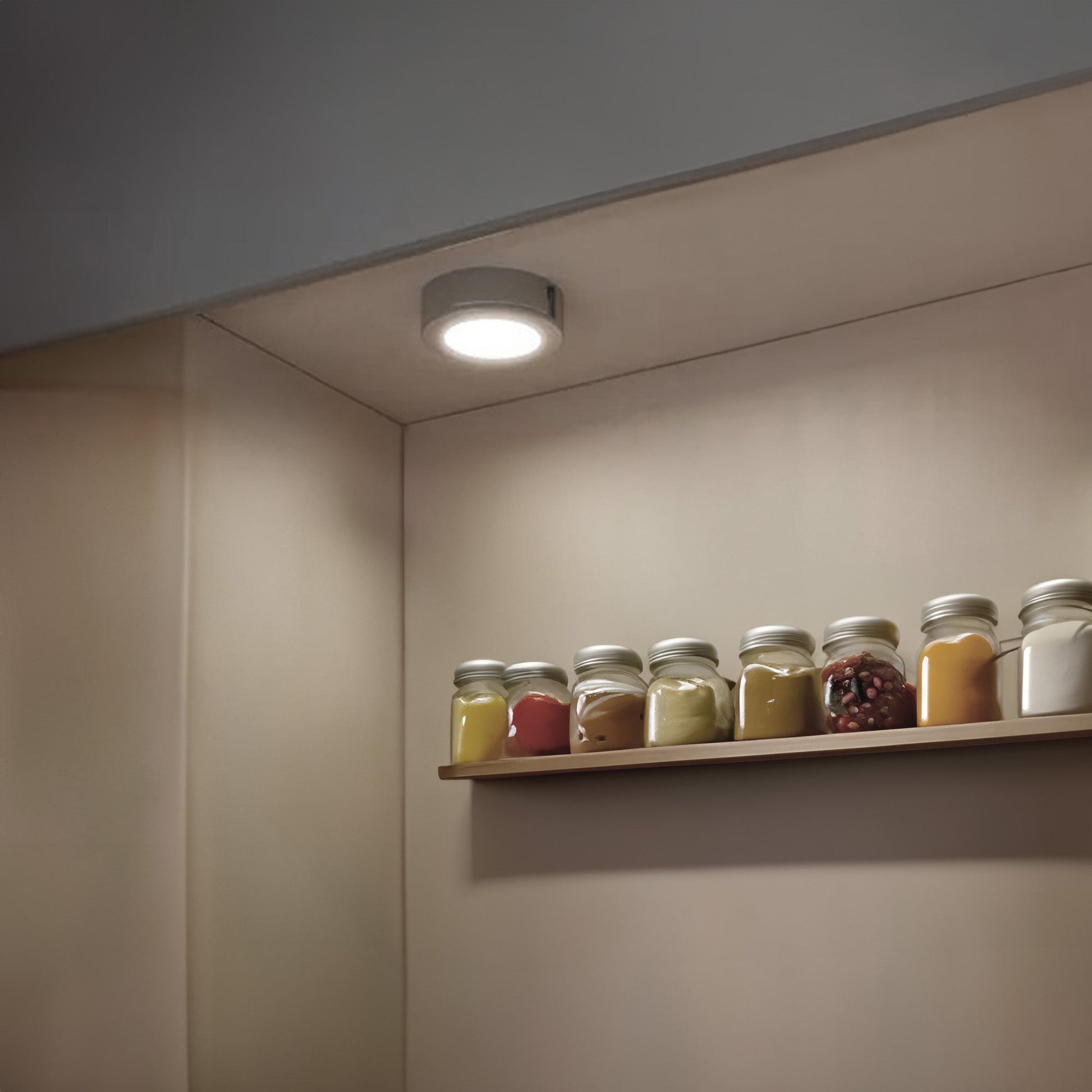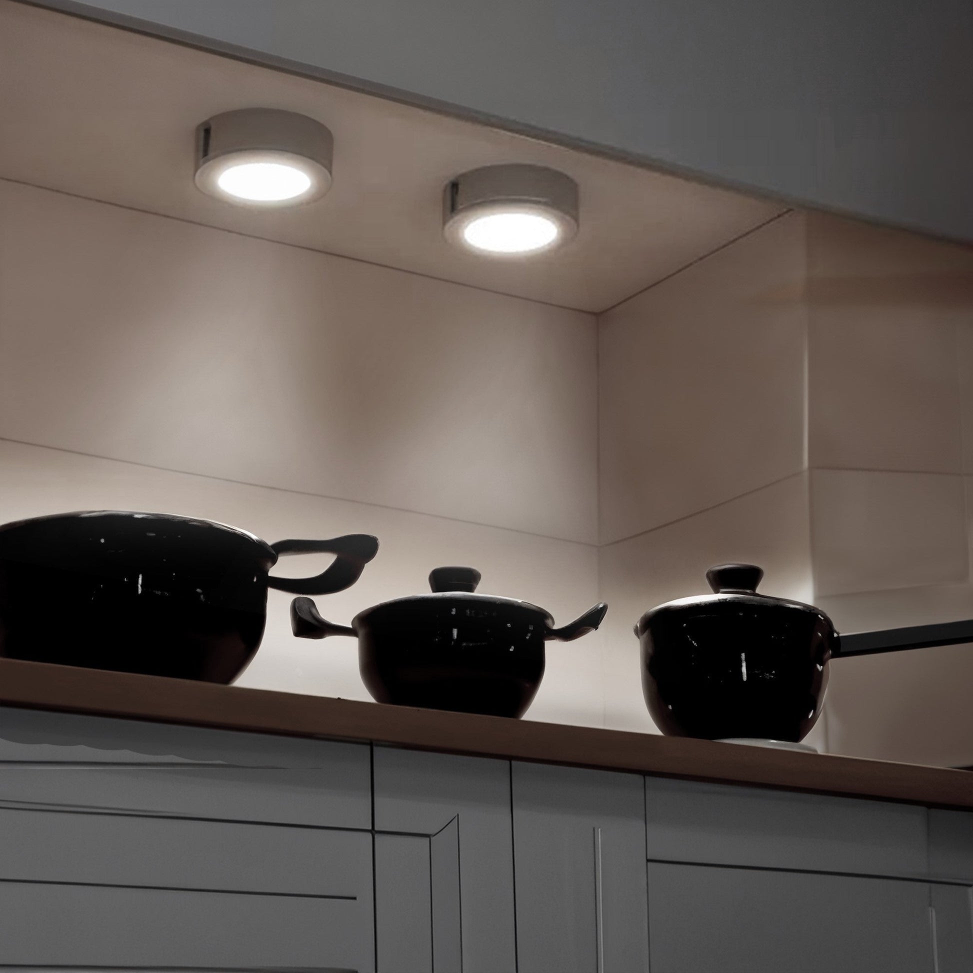 - Versatile set of 5 LED puck lights that seamlessly merge style and functionality while illuminating any dark spaces
