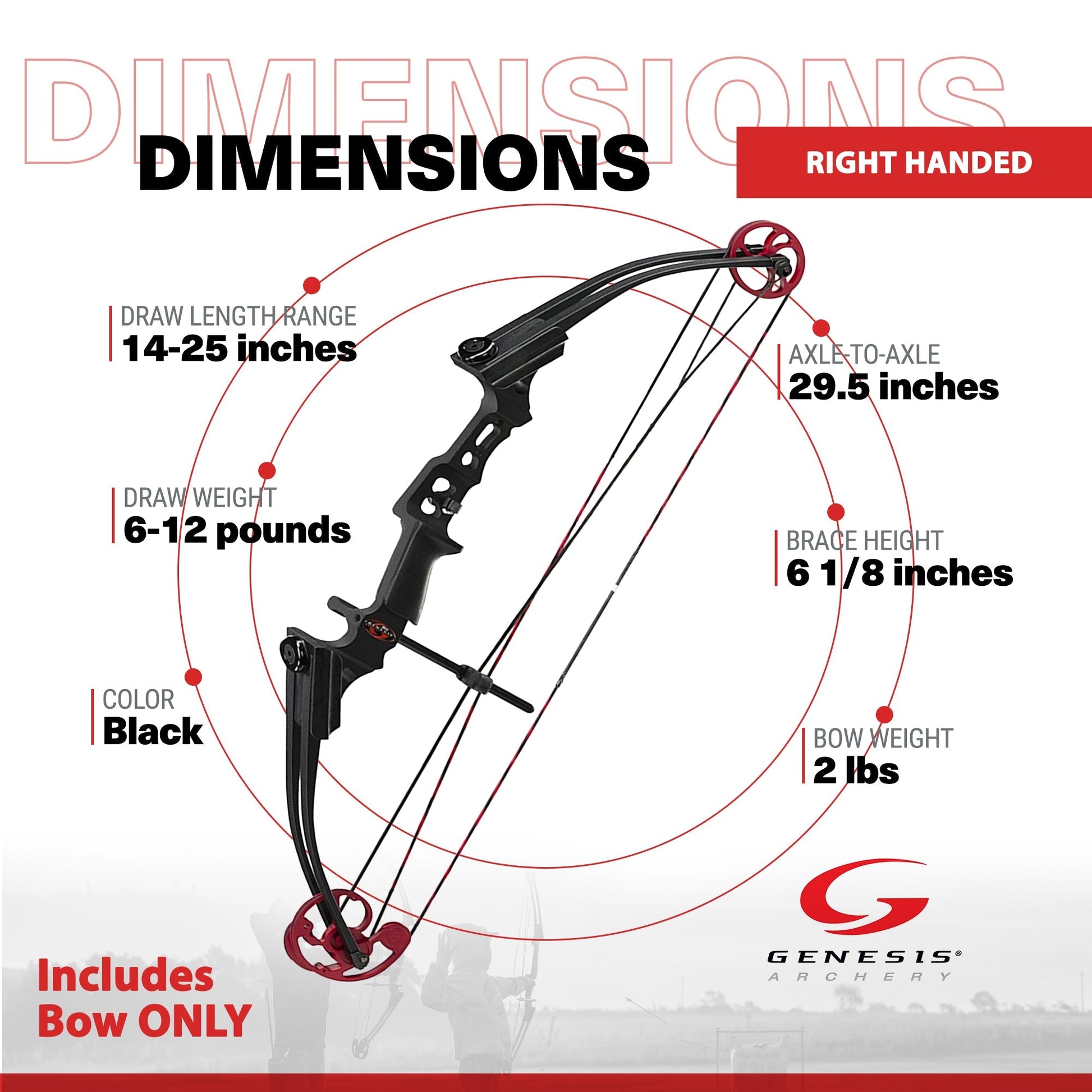 Genesis Original Archery Compound Bow, Adjustable Size, Draw Hand-Right, Black