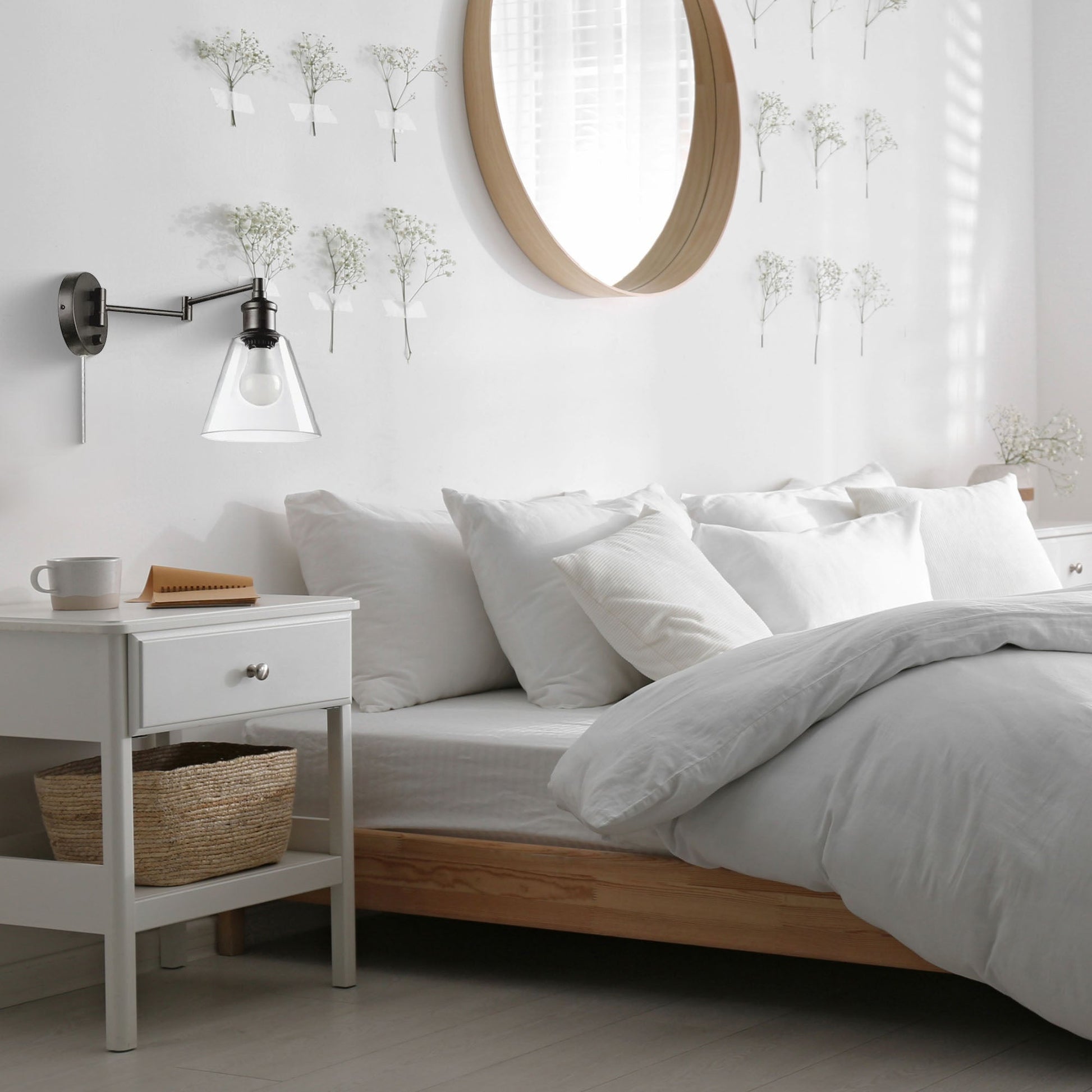 - Versatile and easy to install with the included 6-foot clear cord and comprehensive hardware kit, this sconce offers easy setup wherever it's needed most