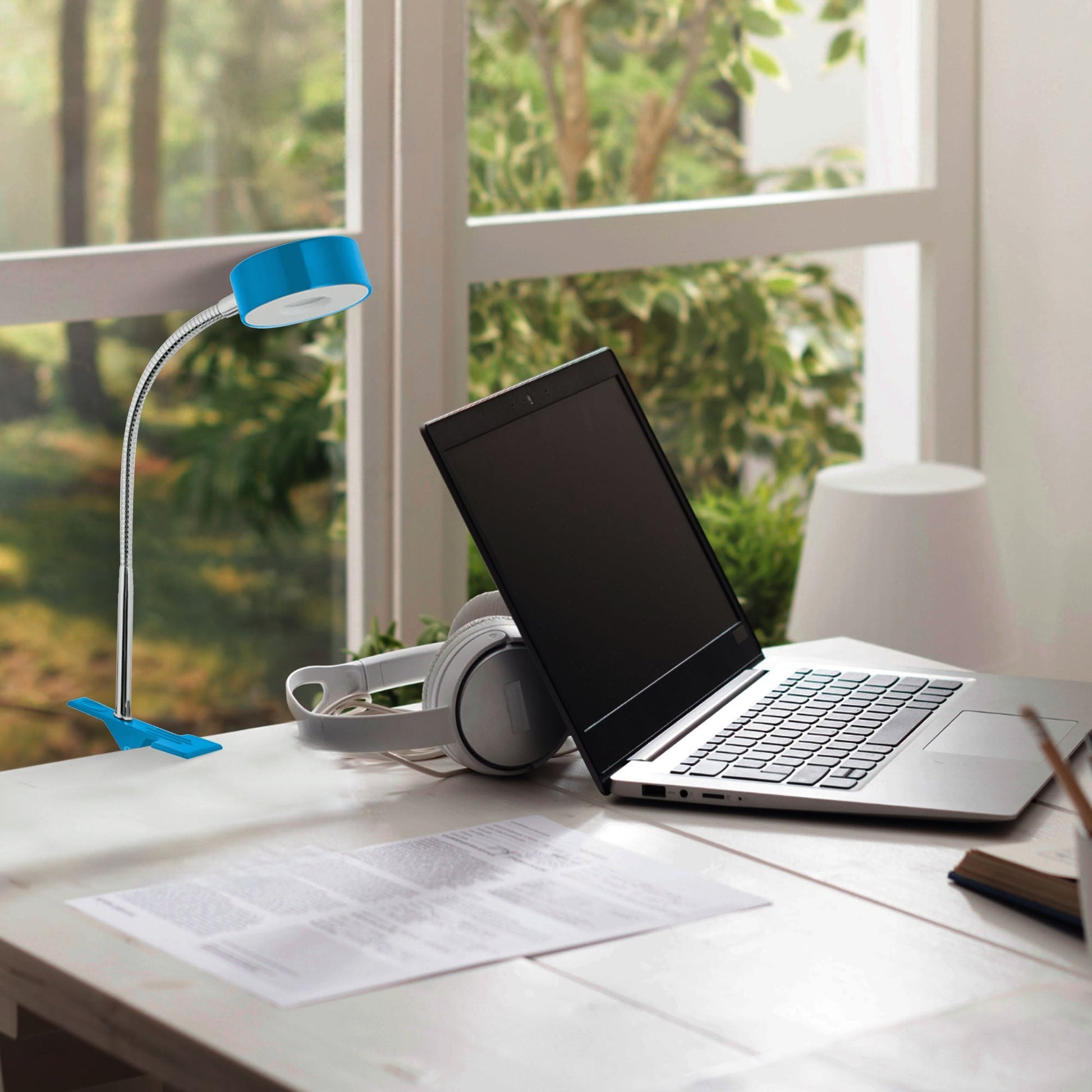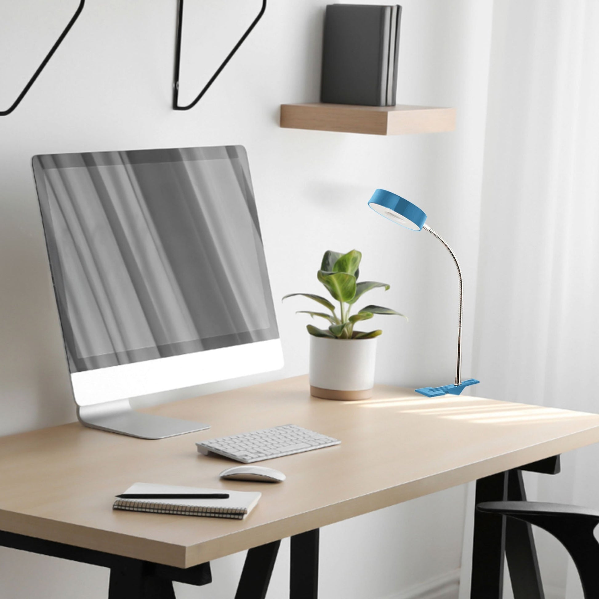 Globe Electric 8.46" 5W 250 Lumens LED Integrated Goose Neck Clip Lamp, Blue