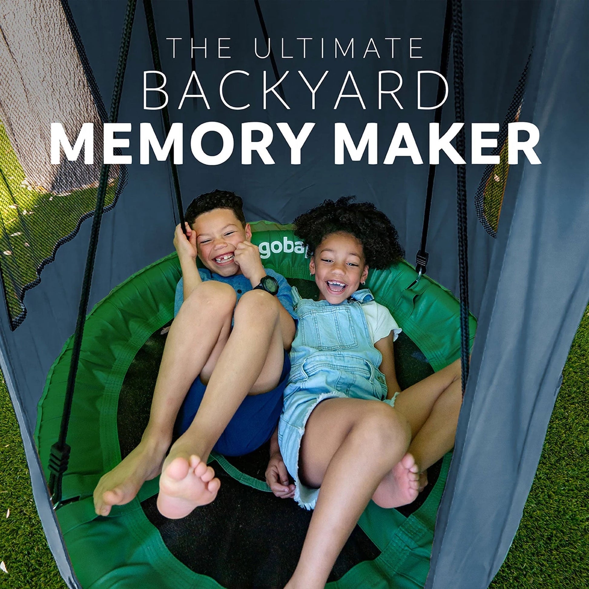 gobaplay Round Platform Saucer Tree Swing, Green with Hanging Tent Cover, Grey