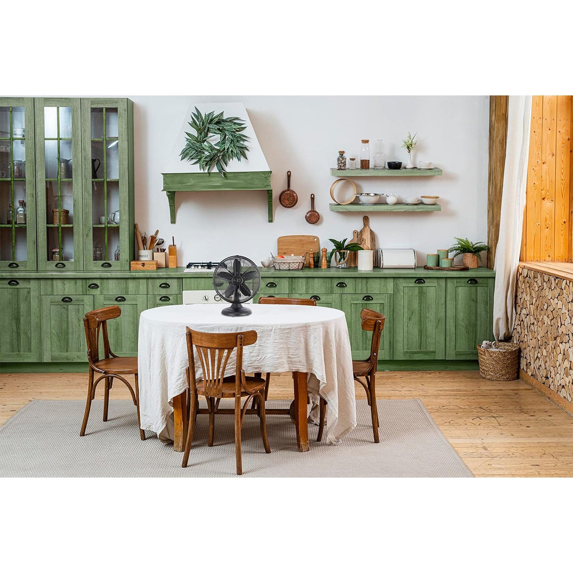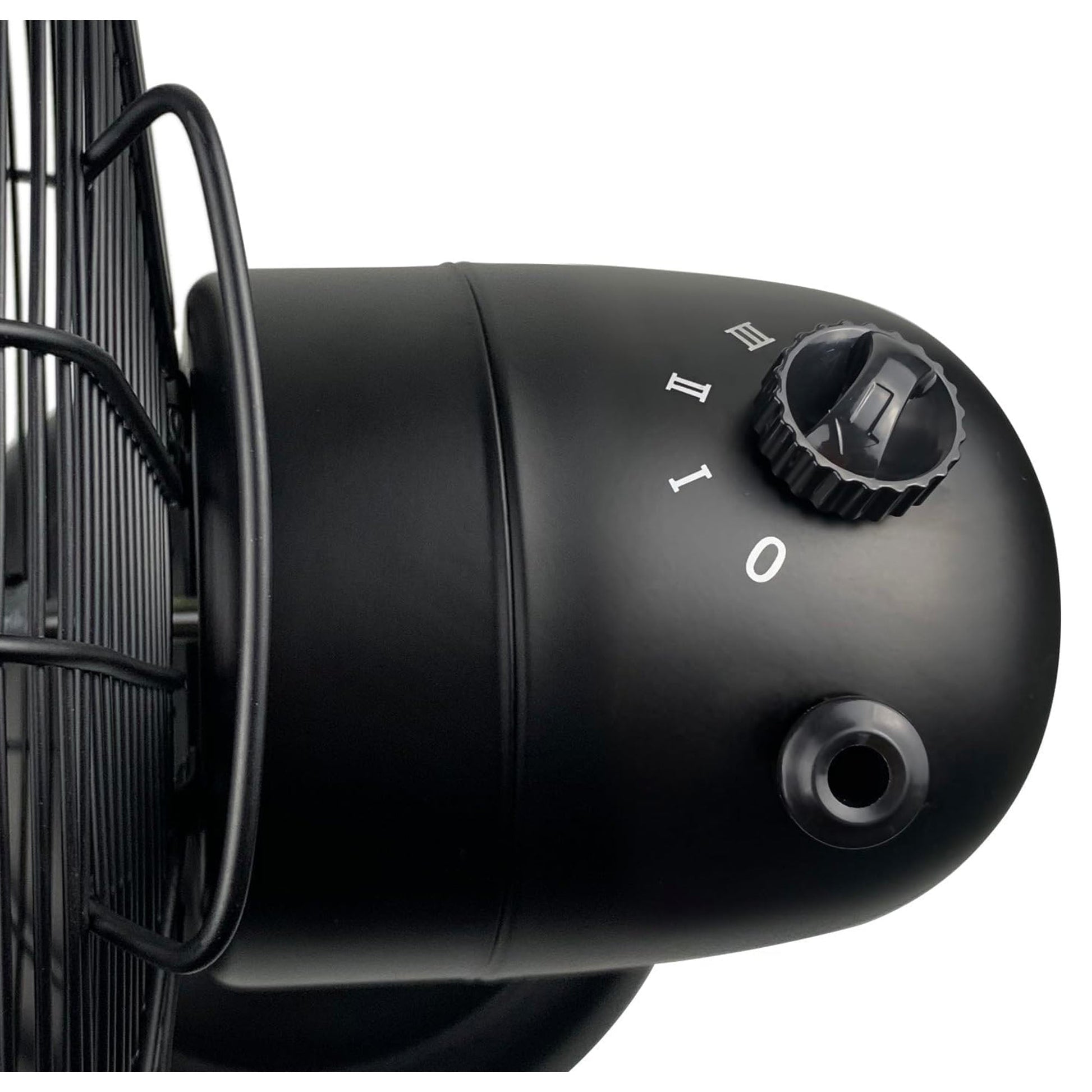 - Stylish 12-inch desk fan with durable all-metal construction and a vintage finish
