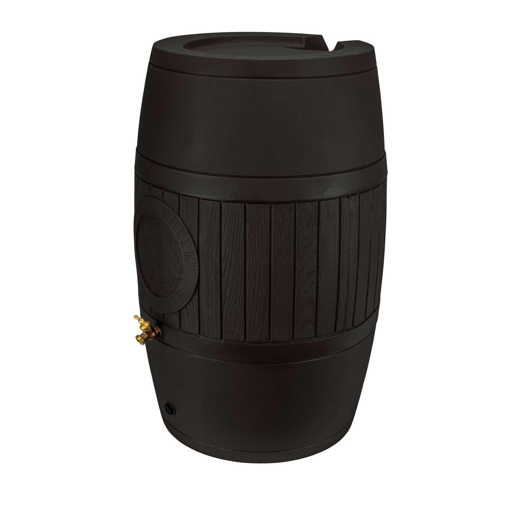Bring timeless charm and smart water conservation to your outdoor space with the Good Ideas Bushman Spruce Creek 54 Gallon Rain Saver Barrel. Crafted with both beauty and performance in mind, this rain barrel is cast from a real oak barrel, capturing every grain and detail of authentic wood texture. Its rustic appearance in a Black finish blends seamlessly with gardens, patios, and outdoor décor.