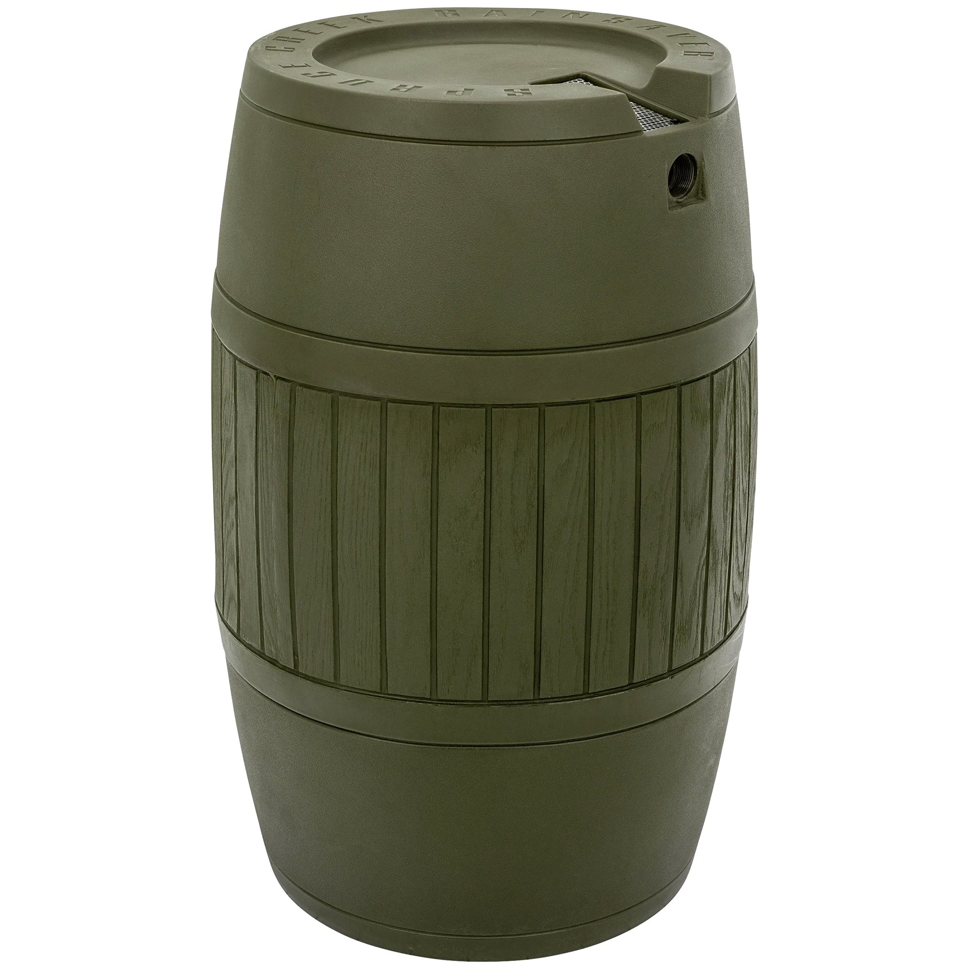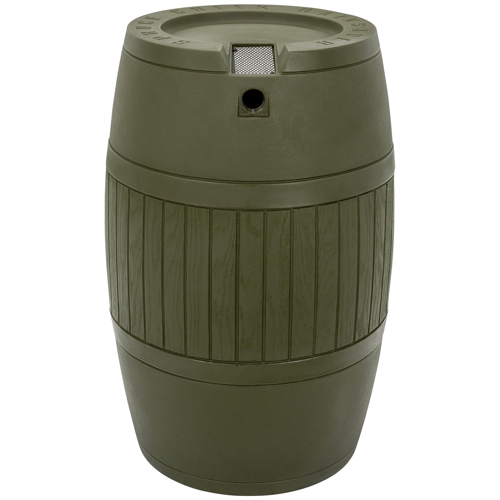 Bring timeless charm and smart water conservation to your outdoor space with the Good Ideas Bushman Spruce Creek 54 Gallon Rain Saver Barrel. Crafted with both beauty and performance in mind, this rain barrel is cast from a real oak barrel, capturing every grain and detail of authentic wood texture. Its rustic appearance in a natural Moss Green finish blends seamlessly with gardens, patios, and outdoor décor.