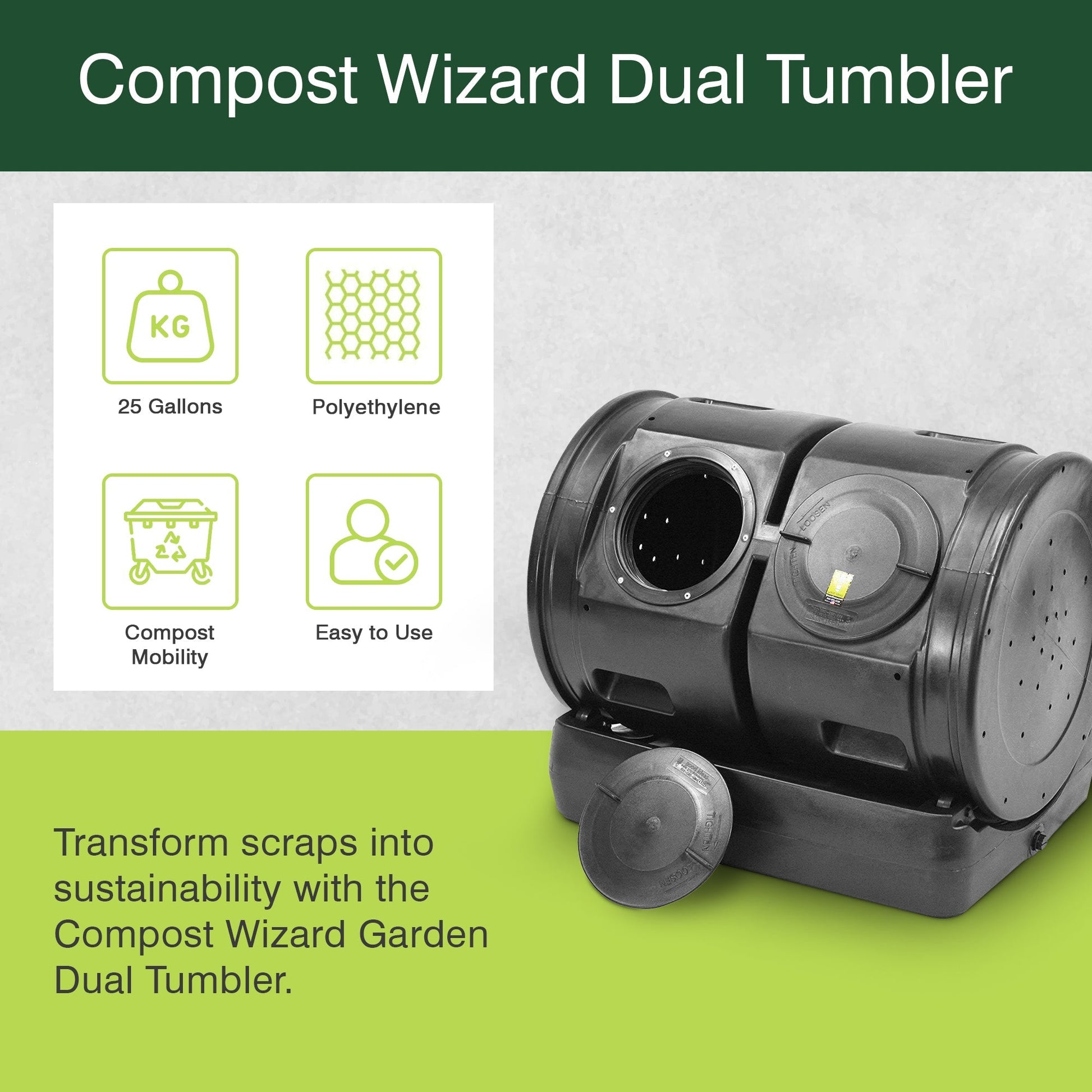 Good Ideas Compost Wizard Outdoor Garden Dual Tumbler Compost Container, Black