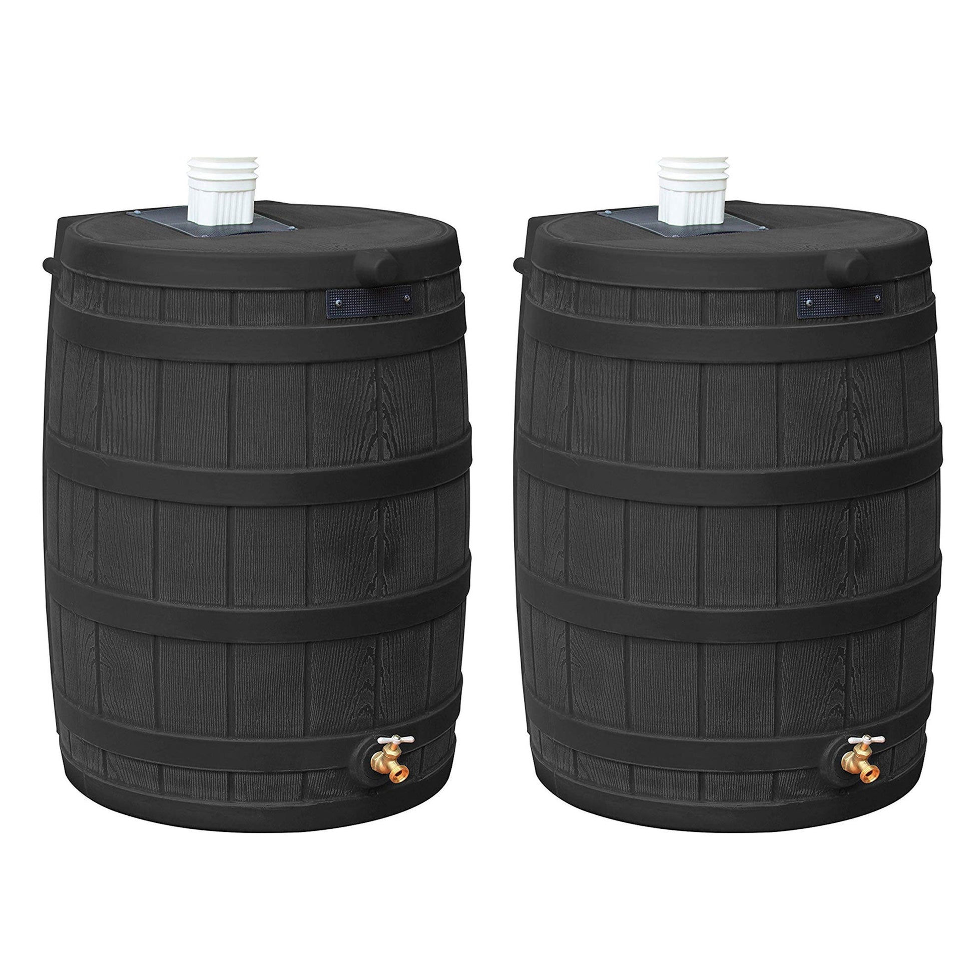 Good Ideas Rain Wizard 40 Gallon Capacity Plastic Rain Barrel, Black (2 Pack)