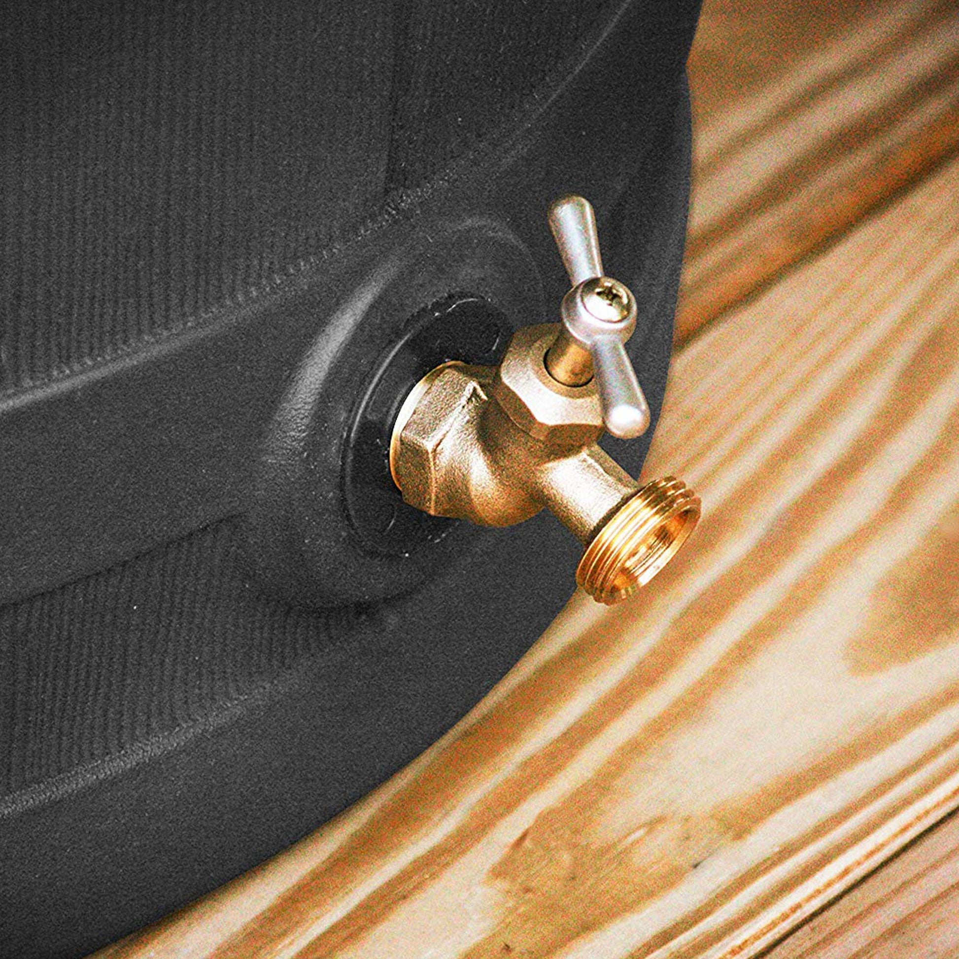 - Offers enhanced versatility by being linkable to other barrels through a separately sold linking kit, providing an easily expandable water storage solution for those seeking increased capacity and greater flexibility in sustainable water harvesting