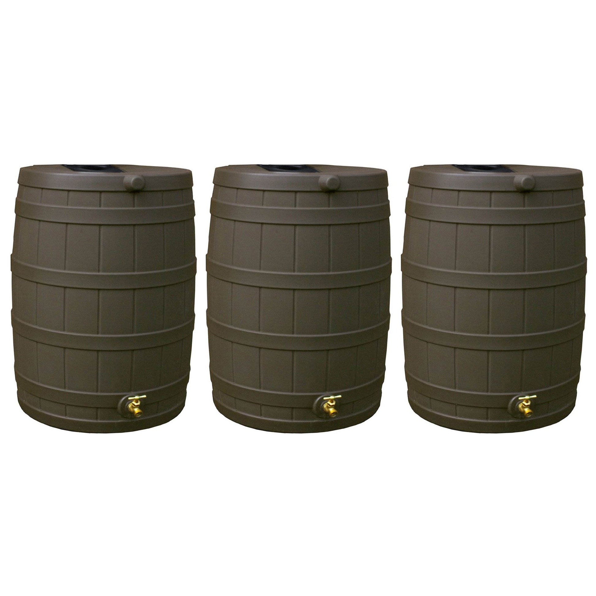 Good Ideas Rain Wizard 40 Gallon Capacity Plastic Rain Barrel Drum, Oak (3 Pack)