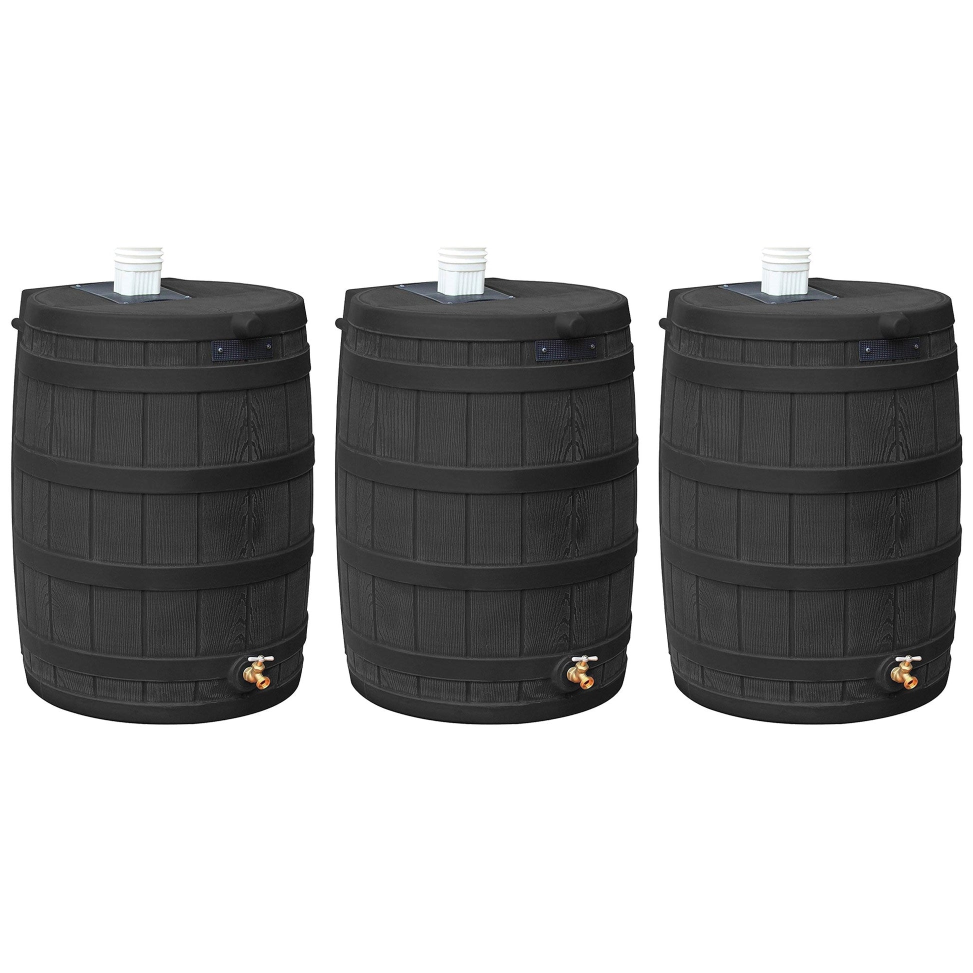 - Catch and store rainwater in this set of 3 50-gallon black faux wood rain barrel