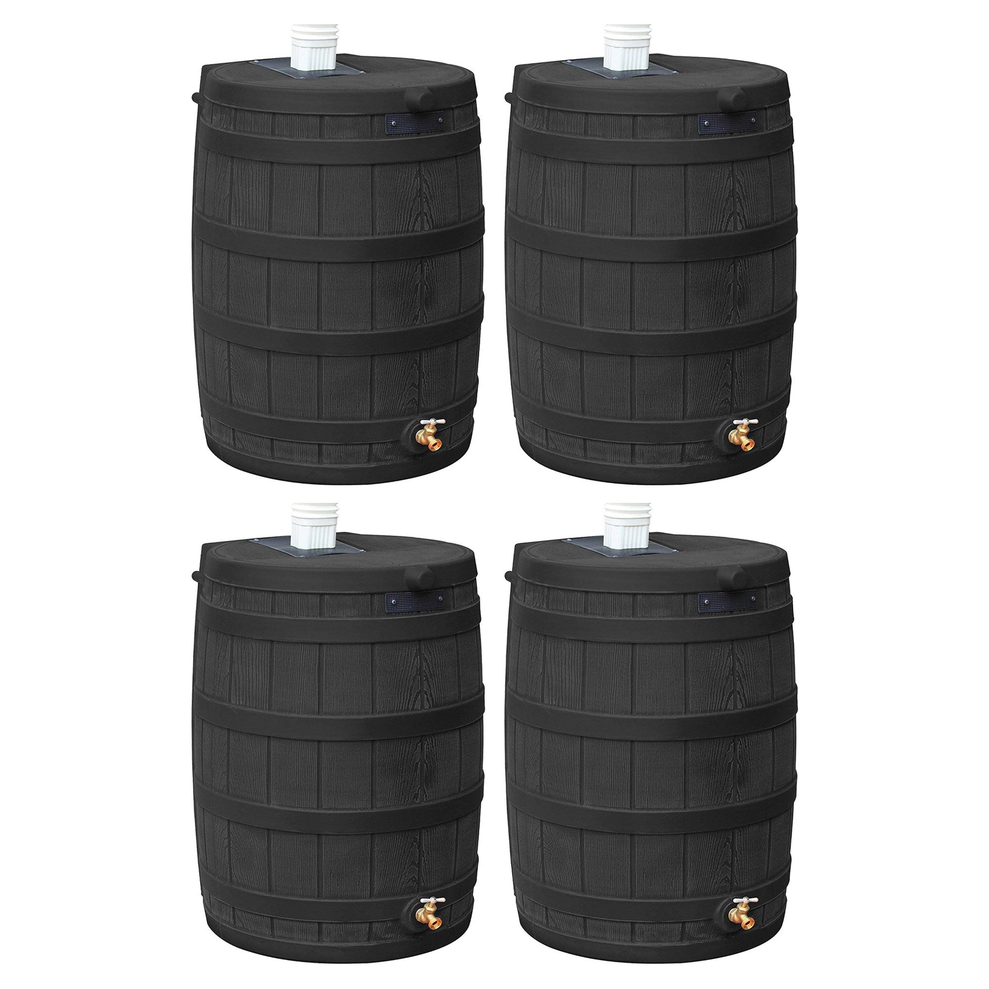 - Catch and store rainwater in this set of 4 50-gallon black faux wood rain barrel