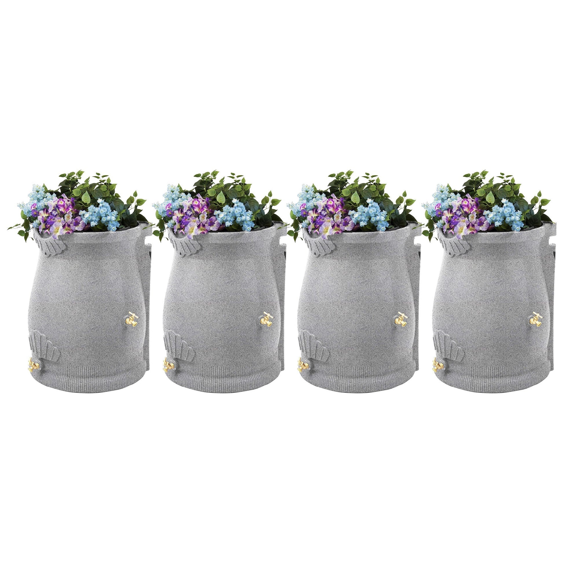 Good Ideas Rain Wizard 50 Gallon Plastic Rain Barrel Urn, Light Granite (4 Pack)