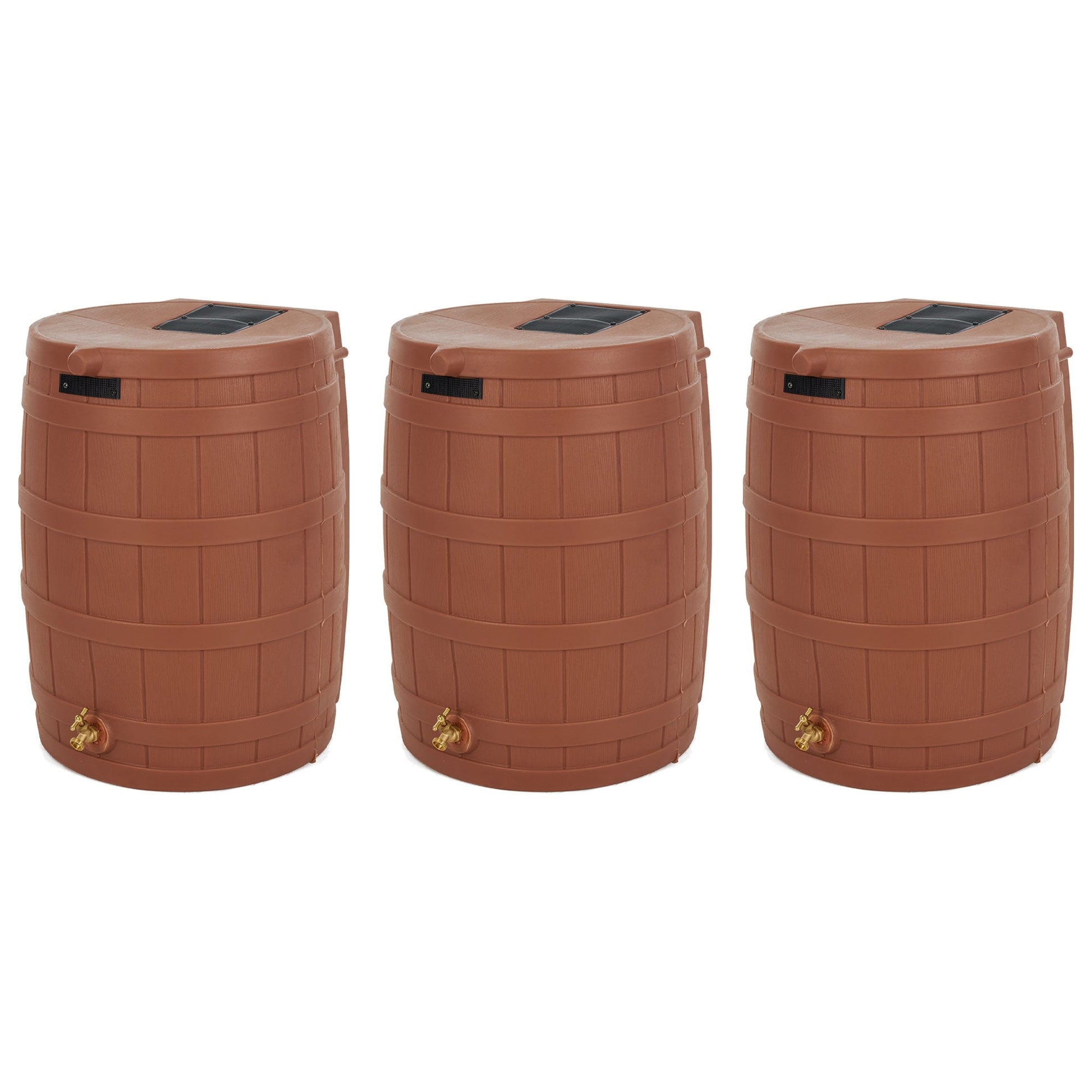 - Add style and beauty to your outdoor space while helping the environment by conserving water with this set of 3 50-gallon rain barrel