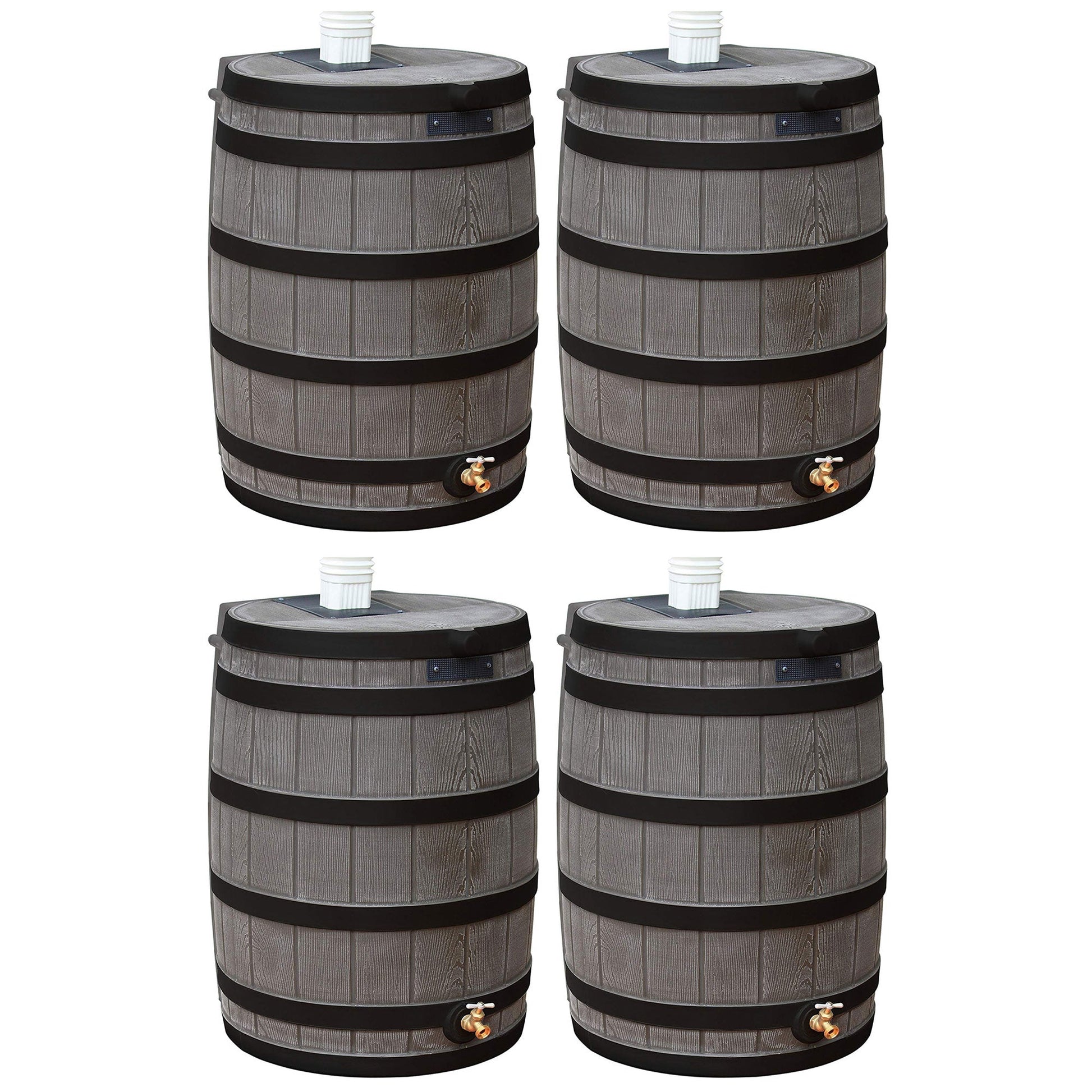 - Catch and store rainwater in this set of 4 50-gallon oak wood rain barrels with darkened ribs