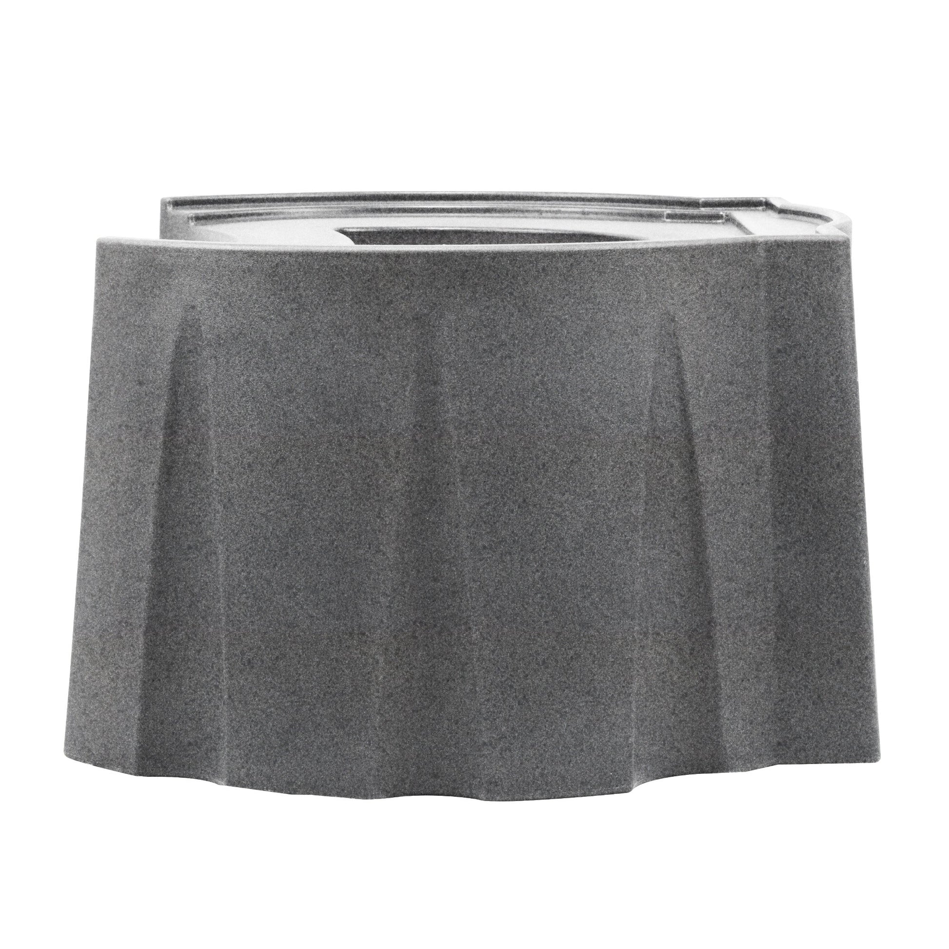 - Dark granite finish adds curb appeal to raised rain barrels with a flat-back profile that fits neatly against walls or fences
