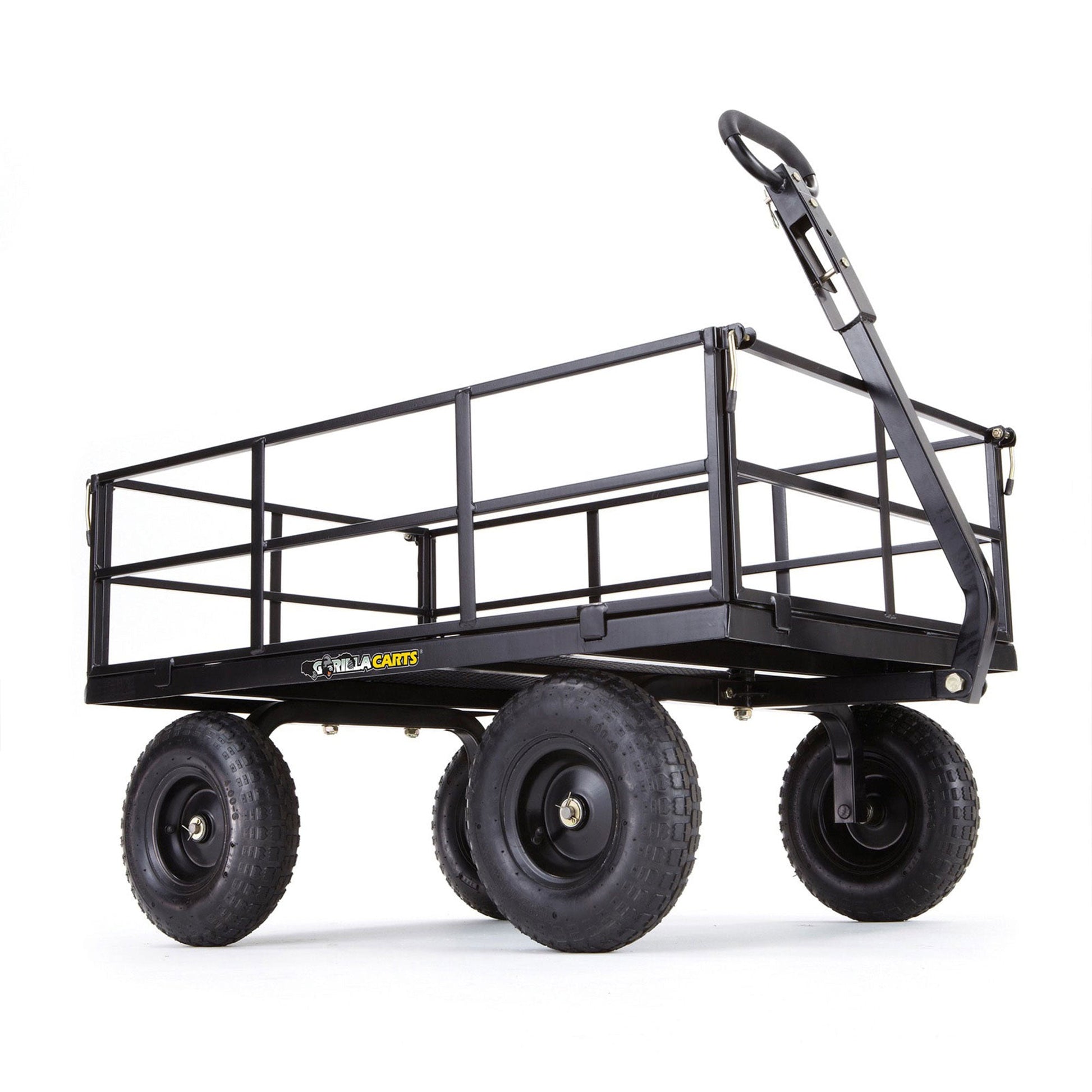 Whether it's hauling chopped wood or fertilizer, carry them all in the Gorilla Carts 9-Cubic Feet Steel Utility Wagon with removable sides. This garden cart with wheels can carry up to 1,200 pounds worth of items for the maximum hauling experience.
