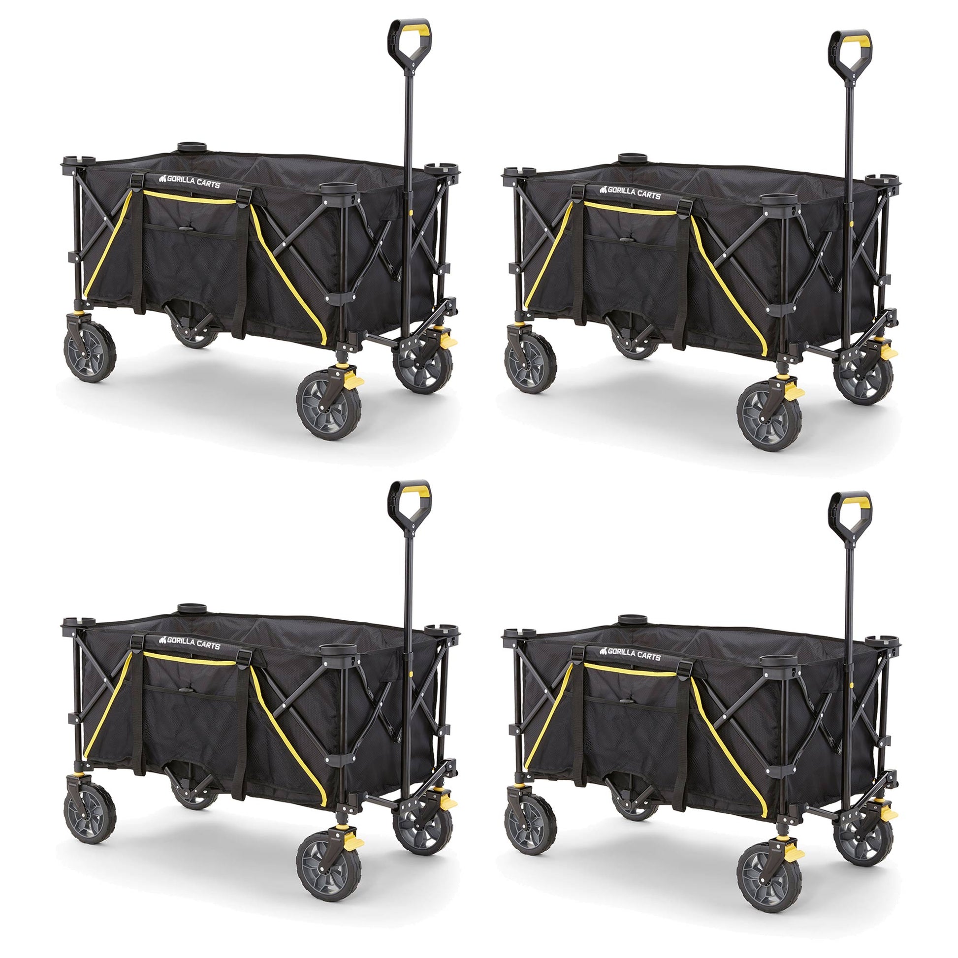 Gorilla Carts 7 Cu Ft Collapsible Utility Wagon,Oversize Bed, Black (4 Pack)