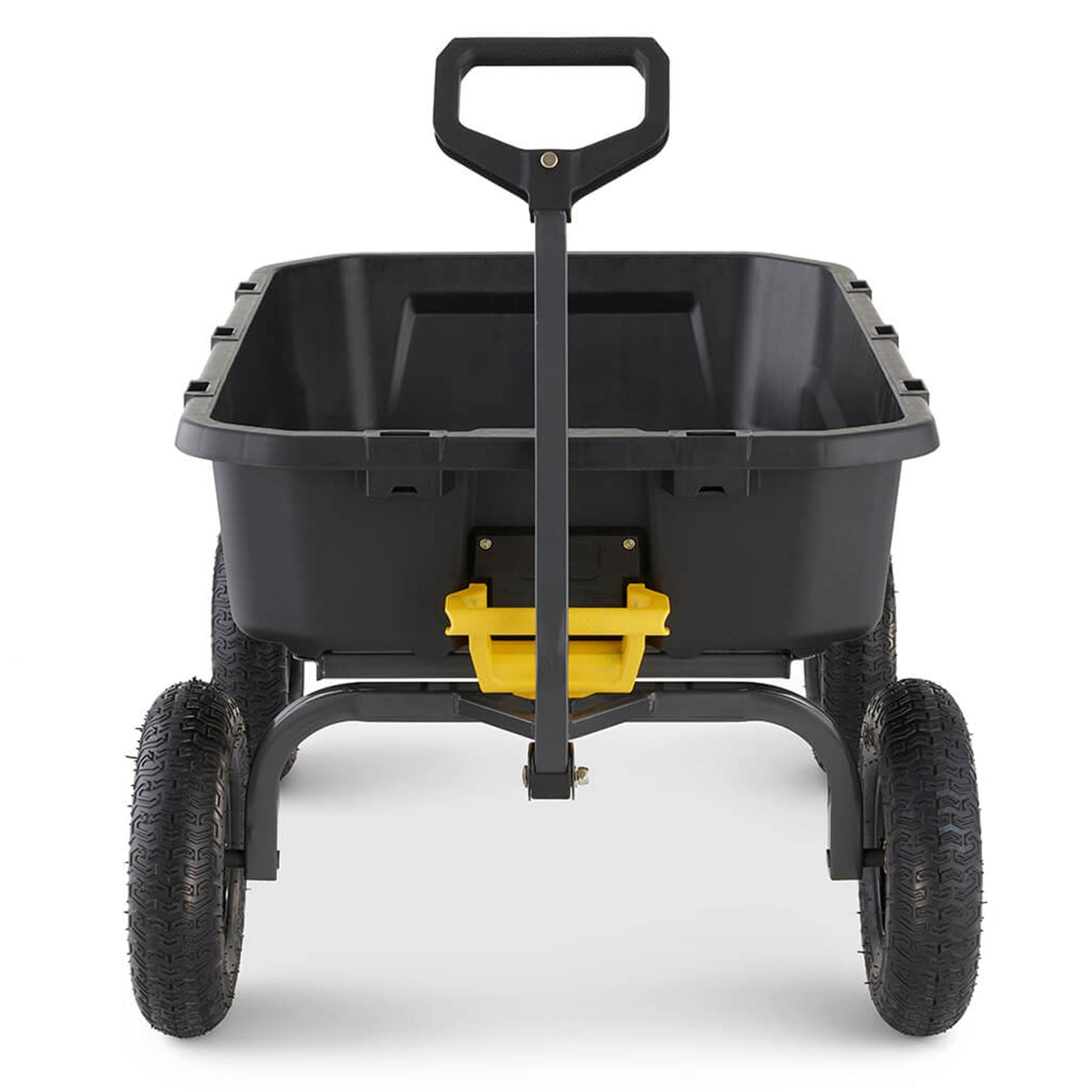 - Pullable cart features a 48.5-inch by 34-inch poly bed for hauling equipment, gardening tools, dirt, and more