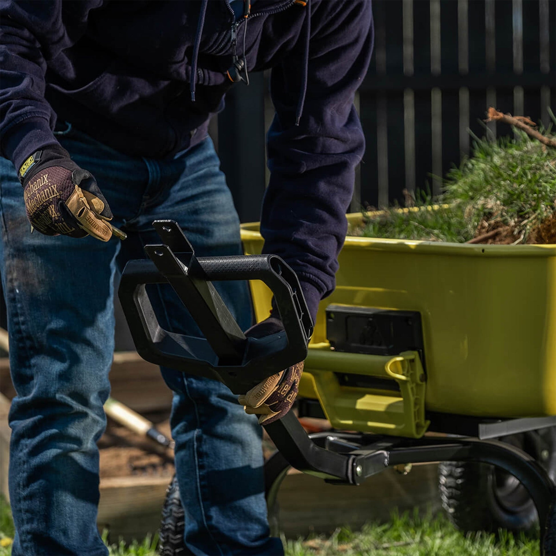 - Patented quick-release dumping system allows you to easily unload garden essentials such as mulch and fertilizer