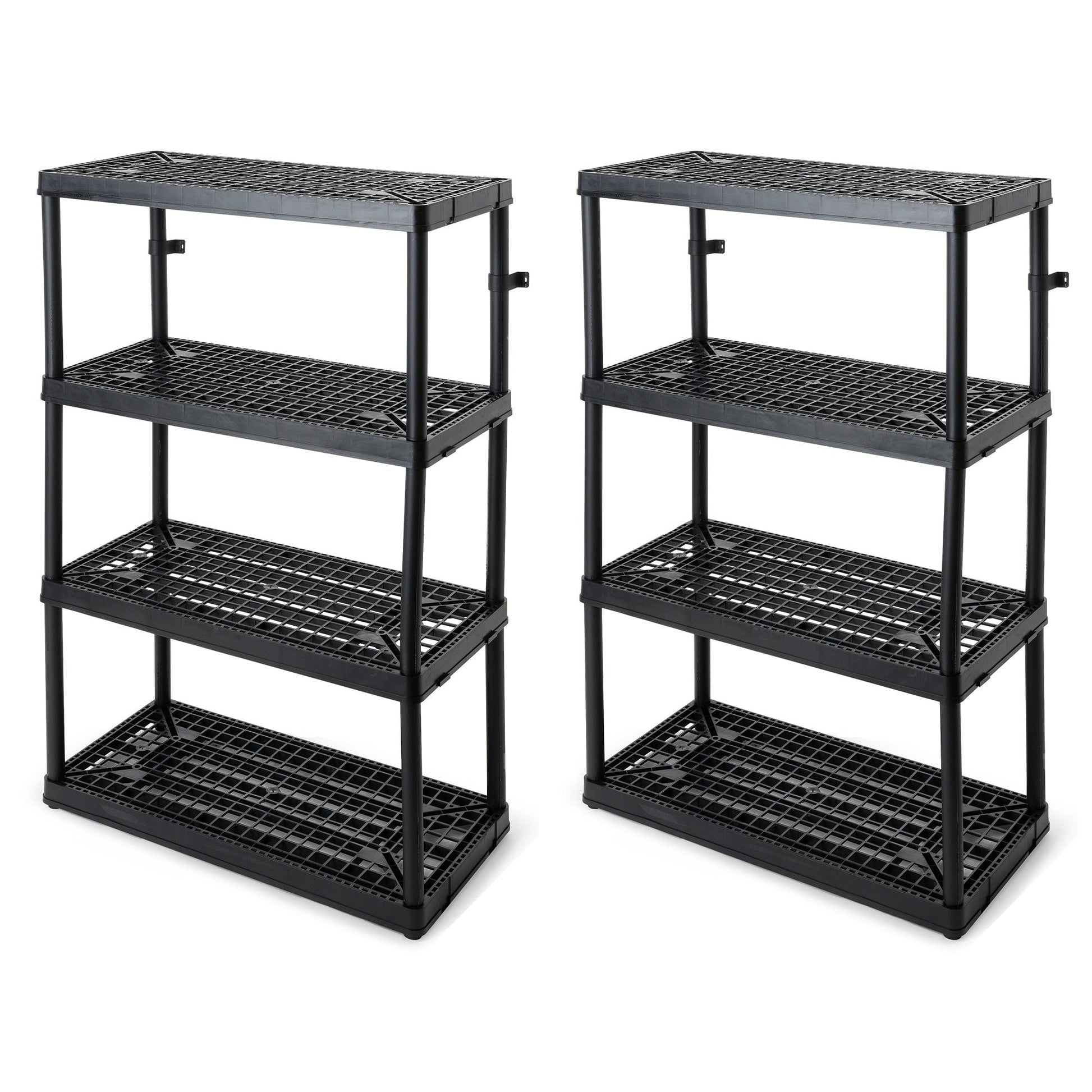 When you're short on closet space or need to organize the pantry, count on this 4-Tier Fixed Height Storage Shelving from Gracious Living to help you transform clutter into clean. These plastic storage shelves function as garage storage, a shelf organizer to display shoes, or even as a bookcase, allowing you to easily organize and store various items.