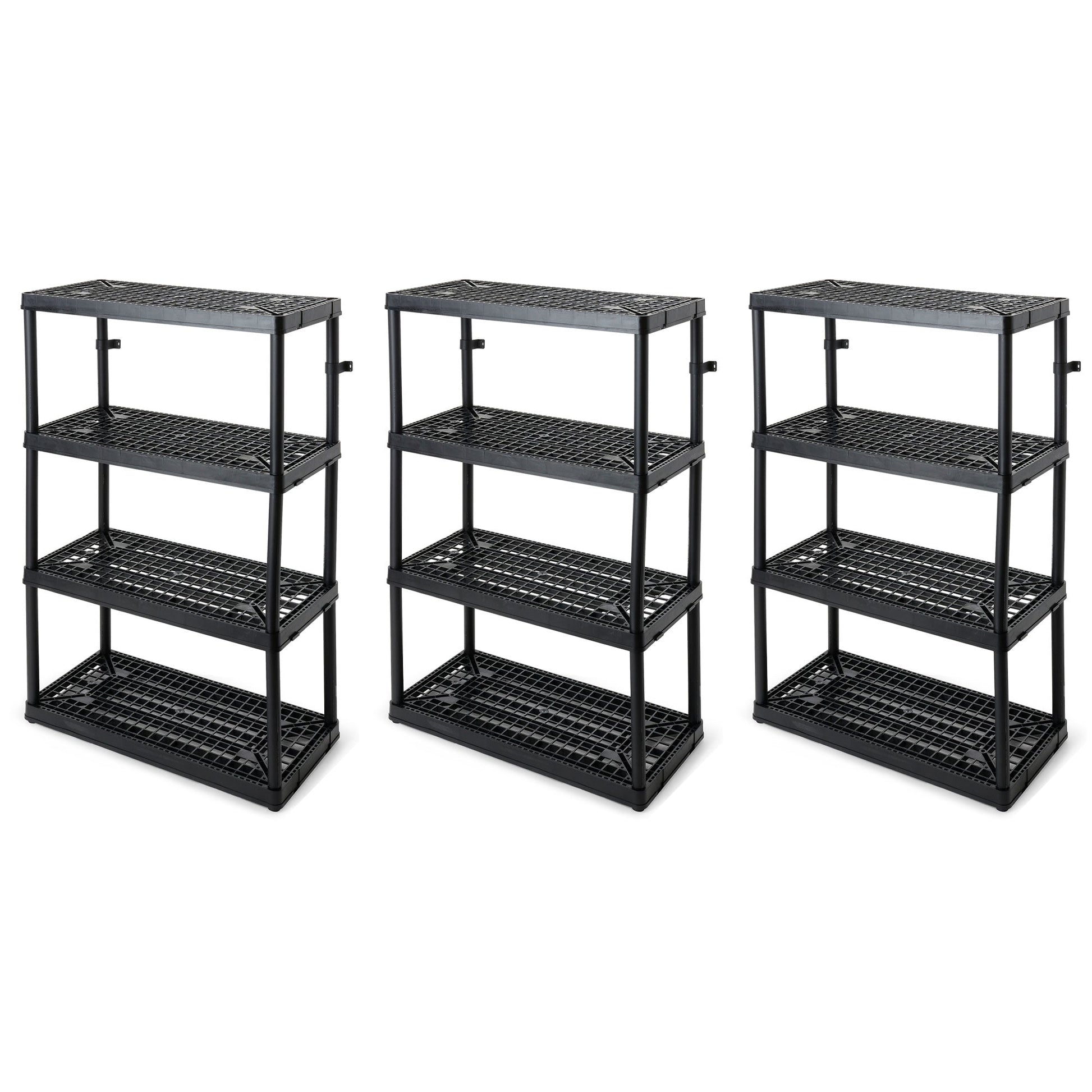 When you're short on closet space or need to organize the pantry, count on this 4-Tier Fixed Height Storage Shelving from Gracious Living to help you transform clutter into clean. These plastic storage shelves function as garage storage, a shelf organizer to display shoes, or even as a bookcase, allowing you to easily organize and store various items.