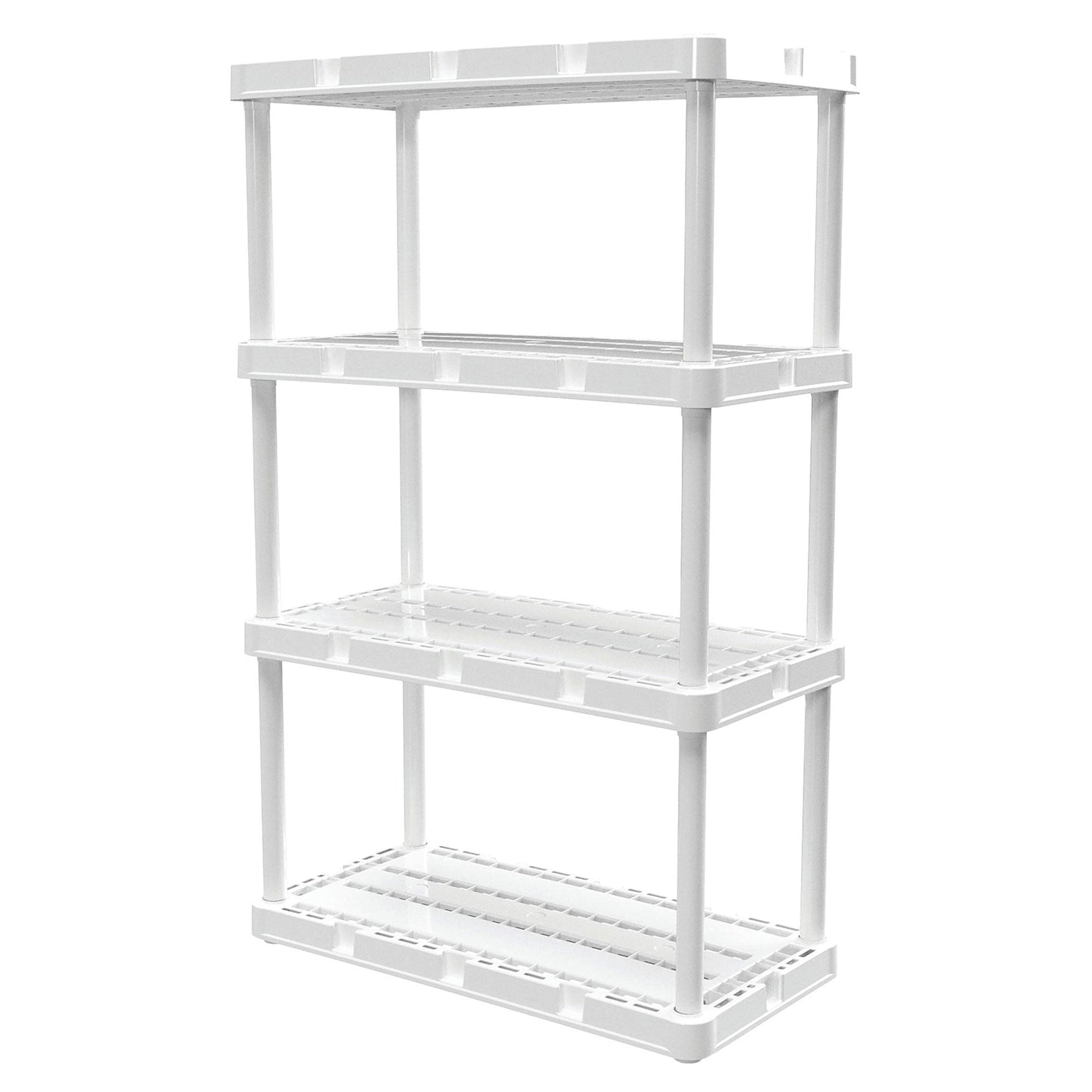 - Store items in your home or garage with the 4-pack of the heavy-duty white 4-shelf storage unit