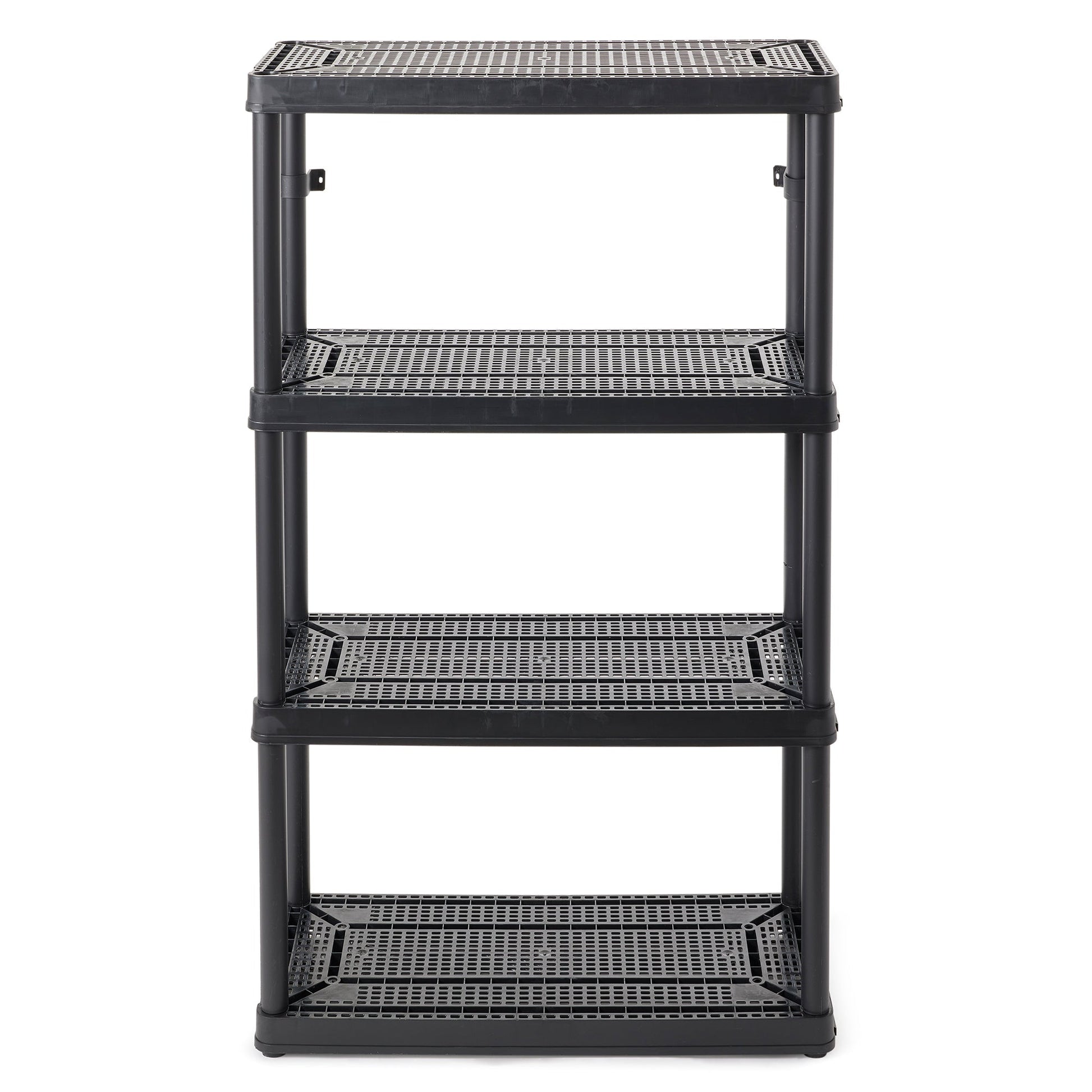 When you're short on closet space or need to organize the pantry, count on these 4-Tier Fixed Height Storage Shelving from Gracious Living to help you transform clutter into clean. These plastic storage shelves function as garage storage, a shelf organizer to display shoes, or even as a bookcase, allowing you to easily organize and store various items.
