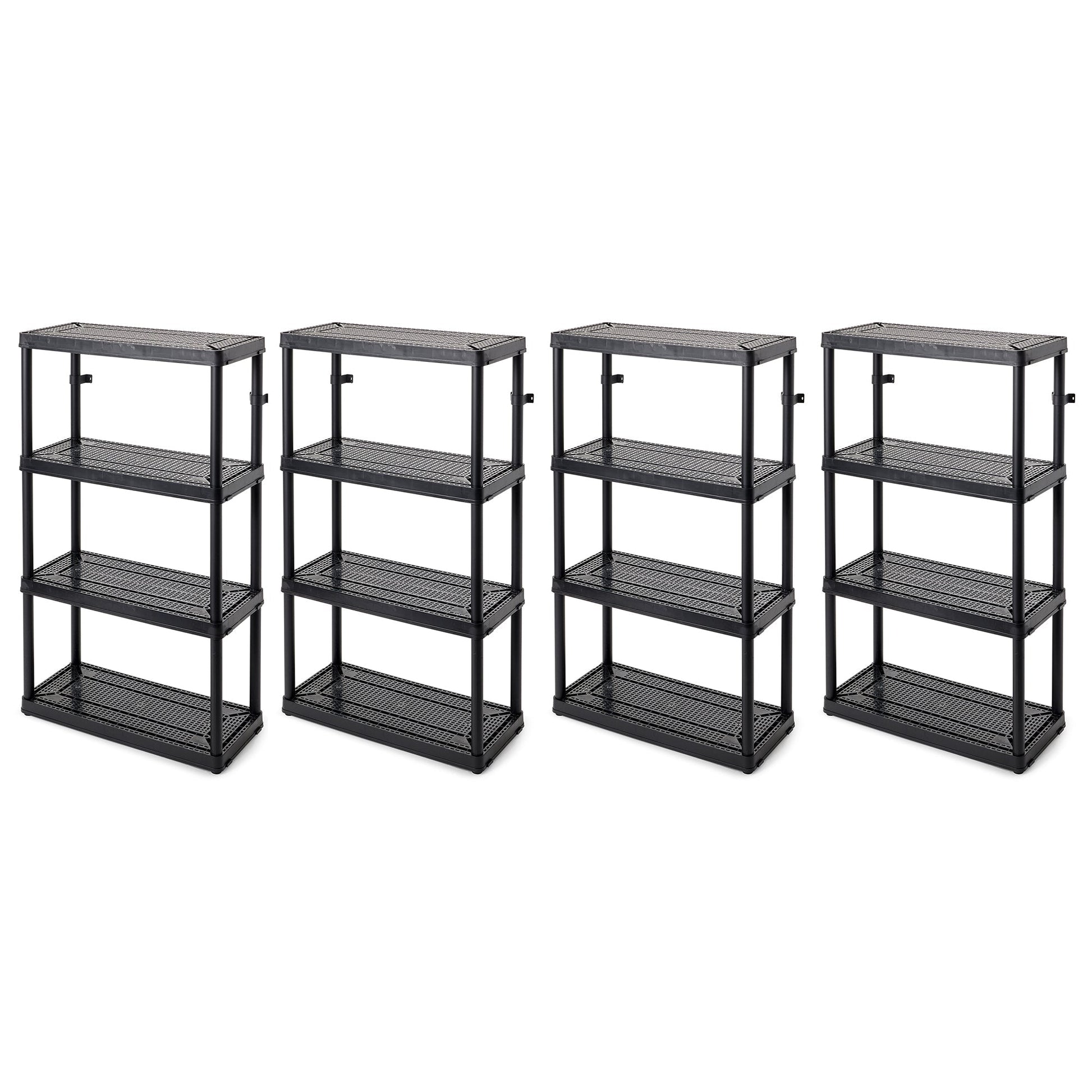 Gracious Living 4 Shelf Fixed Height Medium Duty Storage Unit, Black (4 Pack)
