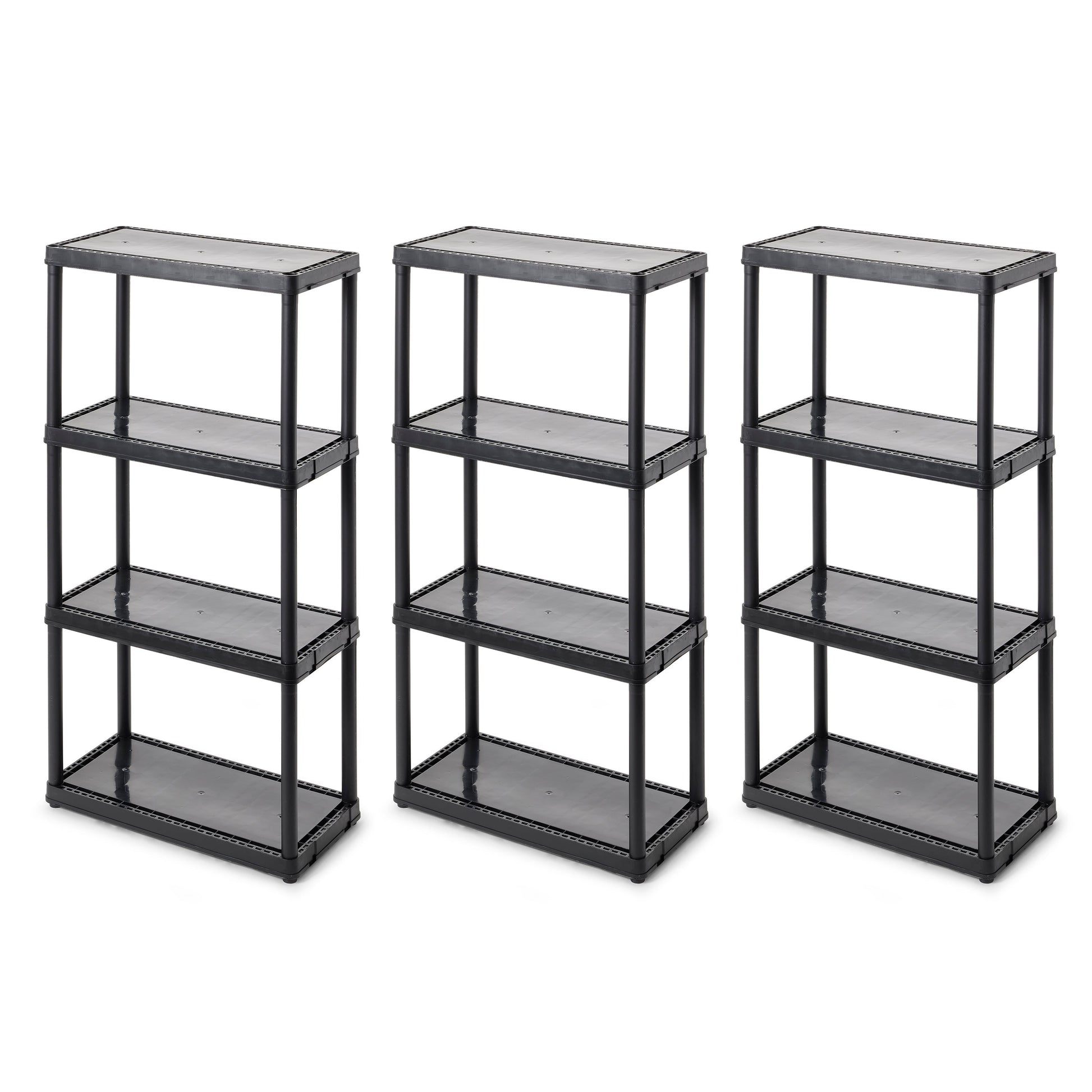Gracious Living 4 Shelf Fixed Height Light Duty Storage Unit, Black (3 Pack)