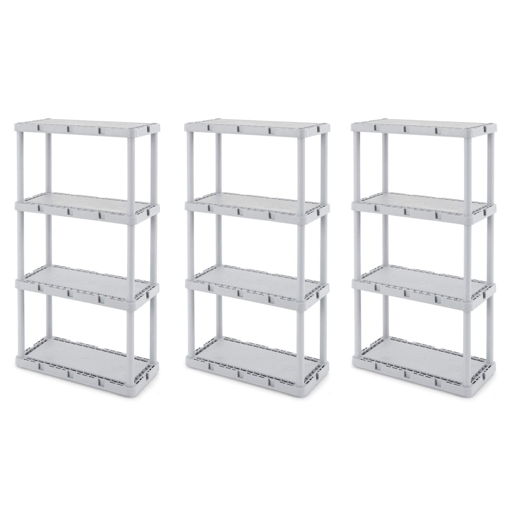 For whatever your organizational needs, the 3-pack of the Gracious Living Knect-A-Shelf Fixed Height 4 Shelf Storage System will help you clean up the clutter.