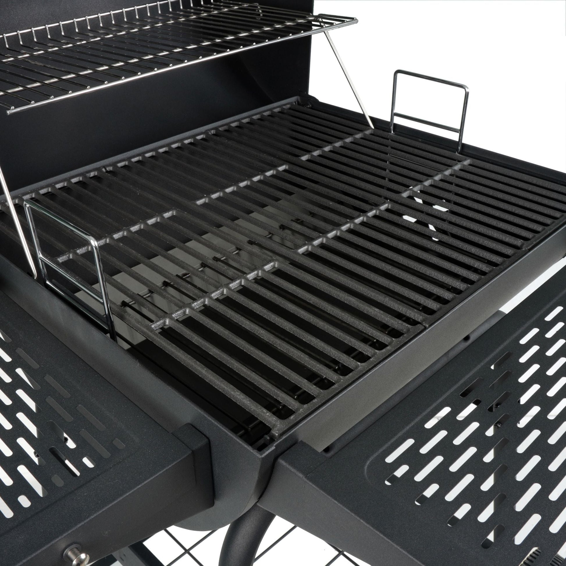 - Barrel charcoal grill with large cooking space and warming rack fits multiple burgers and veggies at once for big BBQ events