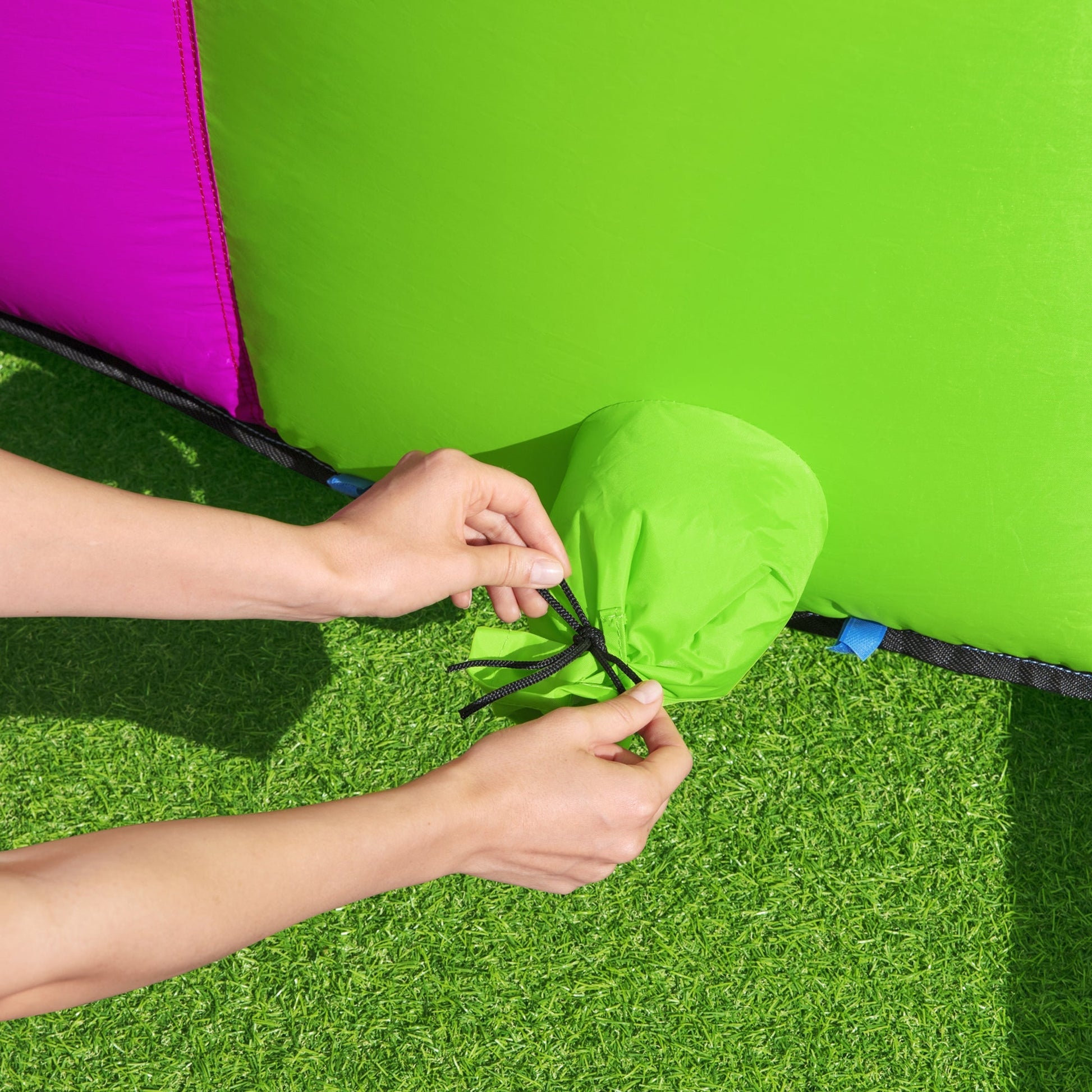 - Play center includes 11 reliable stakes for easy setup, a water spraying hose, a repair kit with multiple assorted patches, and a storage bag