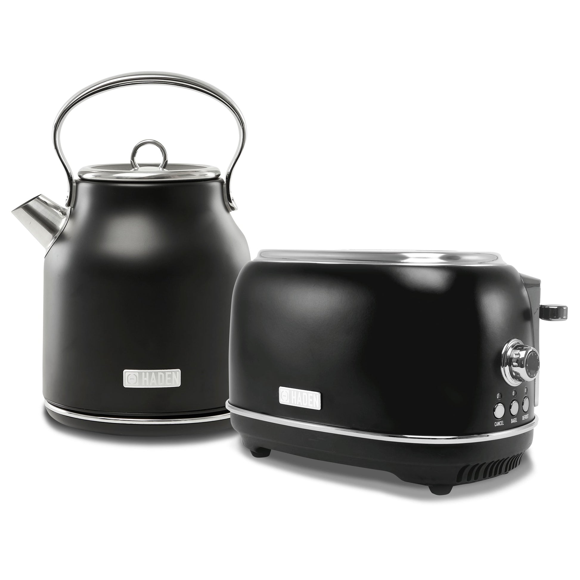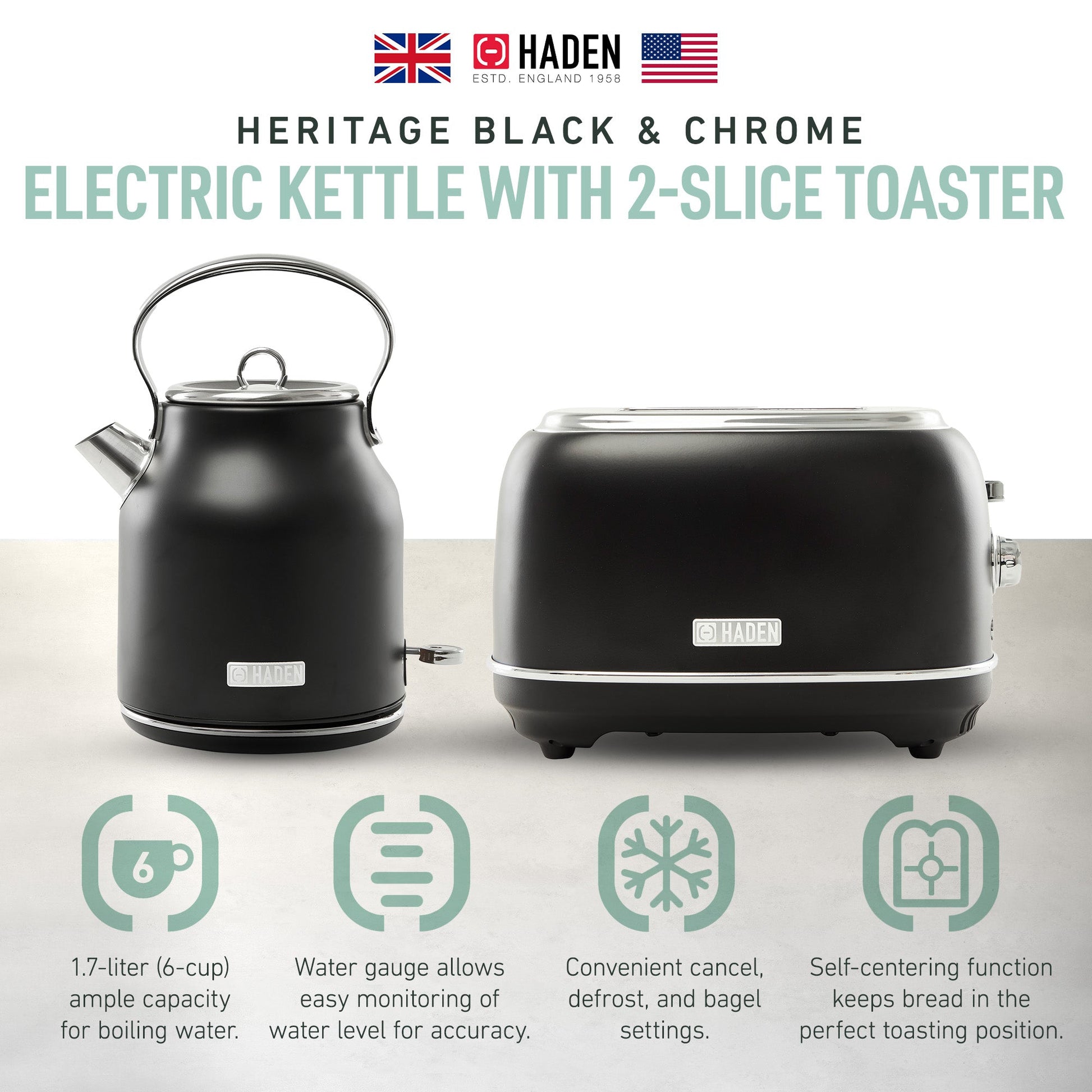 Haden Heritage 2 Slice Wide Slot Toaster & Electric Water Kettle, Black & Chrome