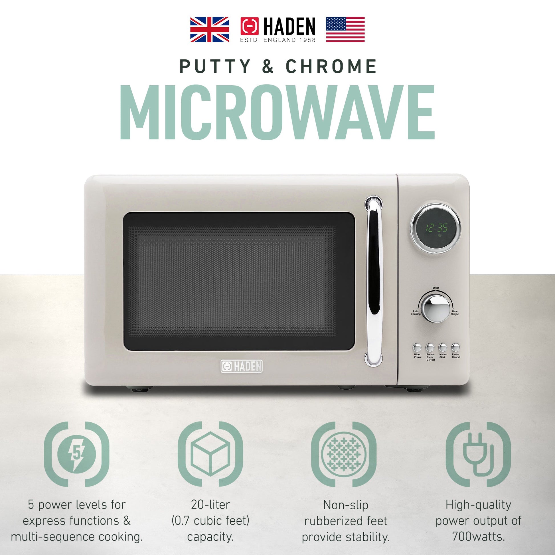 Haden 700 Watt 0.7 Cubic Foot Microwave Oven with Digital Controls, Putty/Chrome