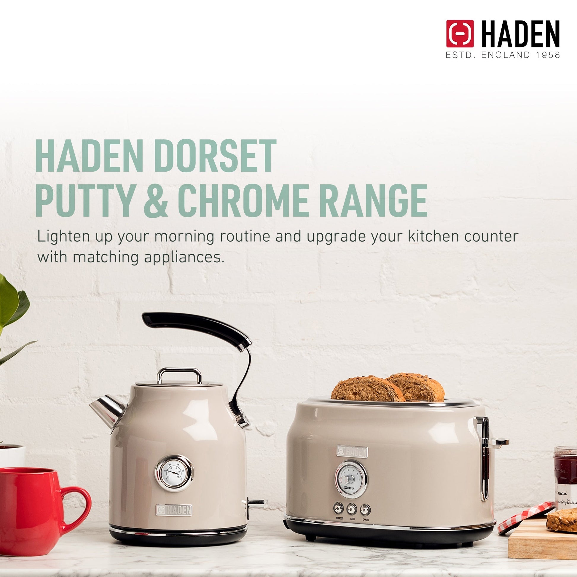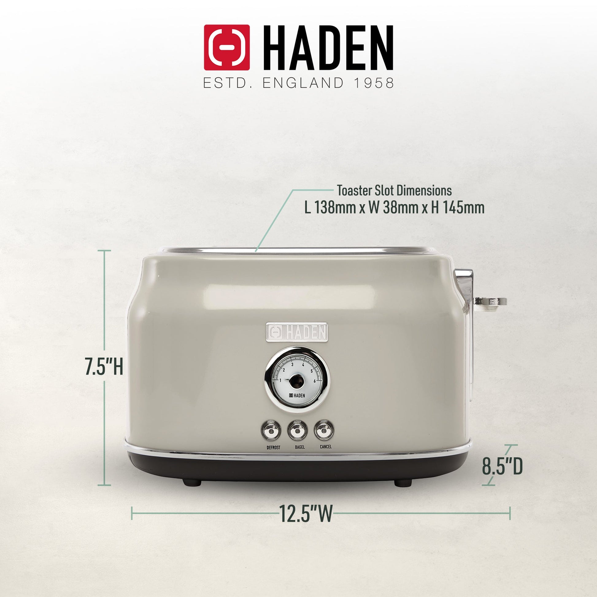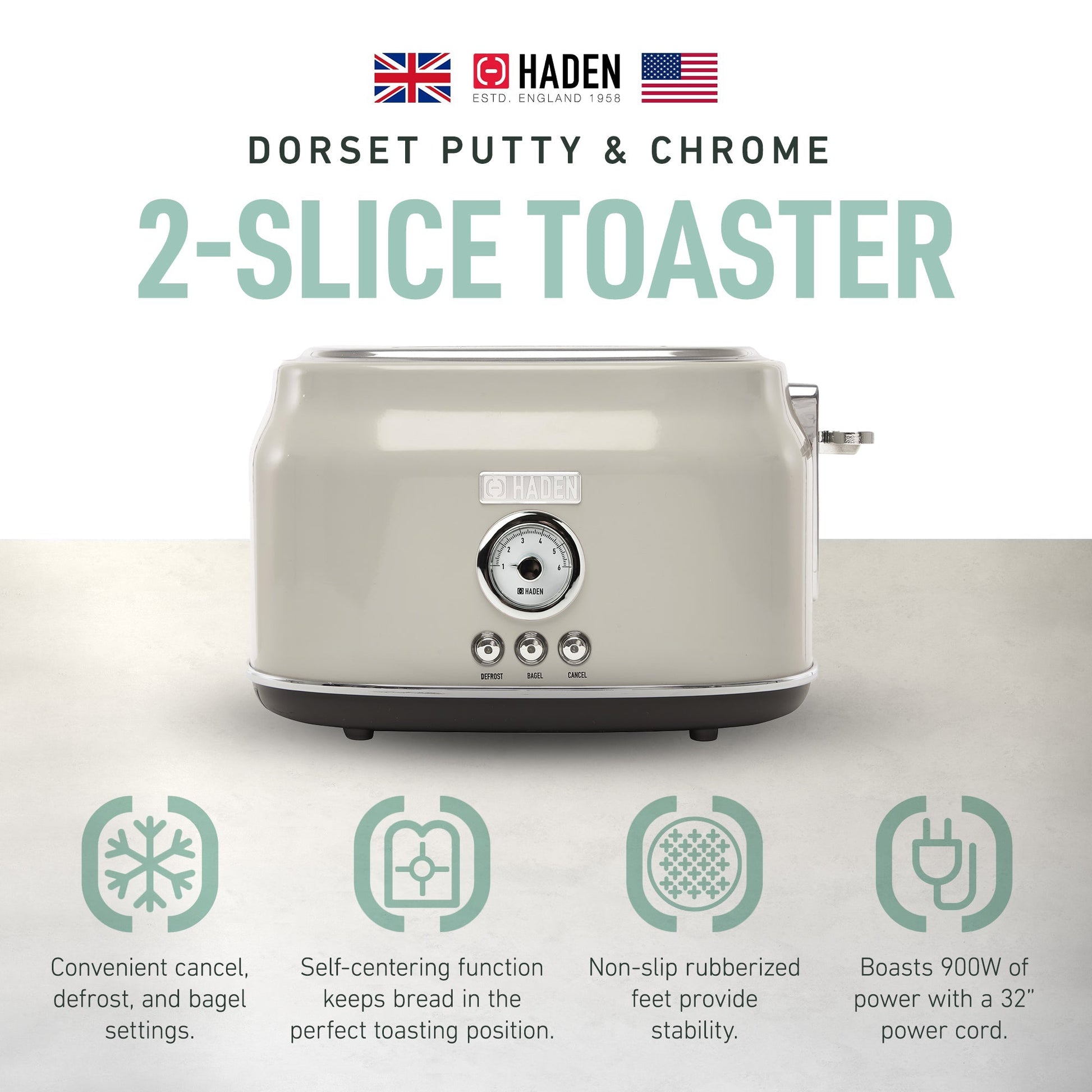 Haden Dorset 2 Slice Wide Slot Stainless Steel Toaster, Putty & Chrome
