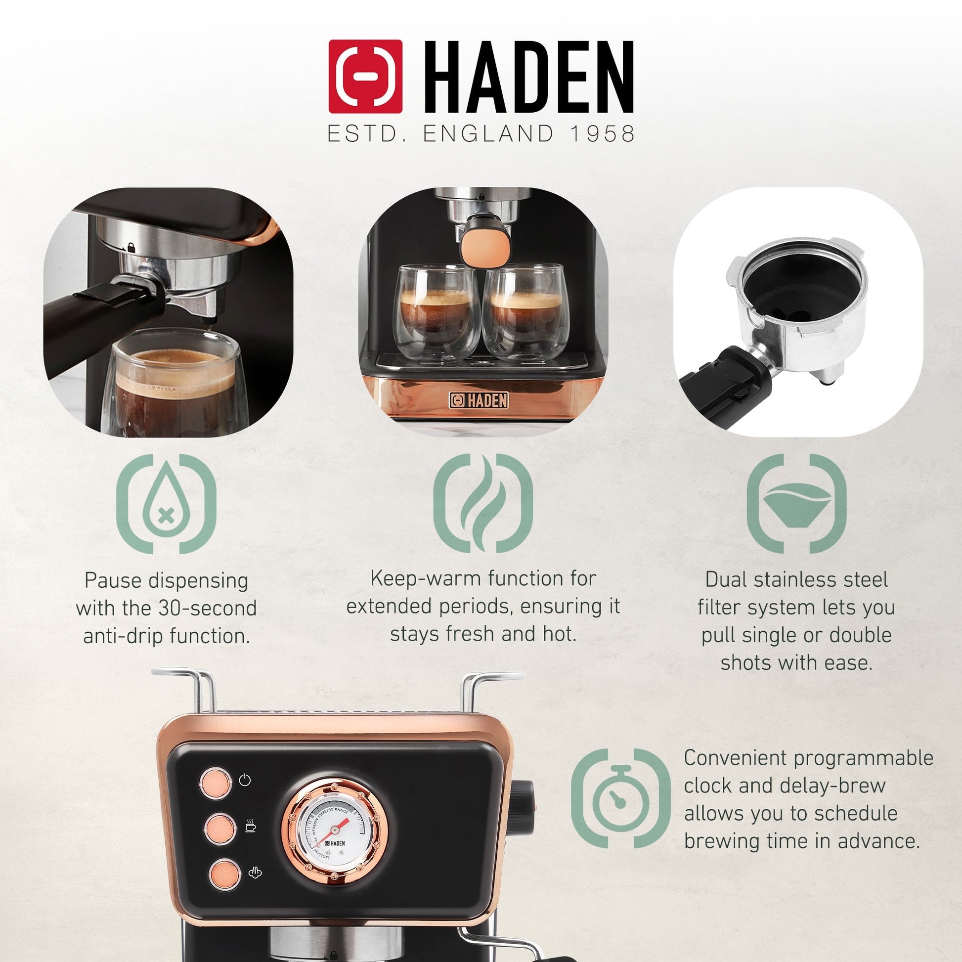 - Elevate your kitchen with this HADEN espresso coffee maker, where classic style meets contemporary living