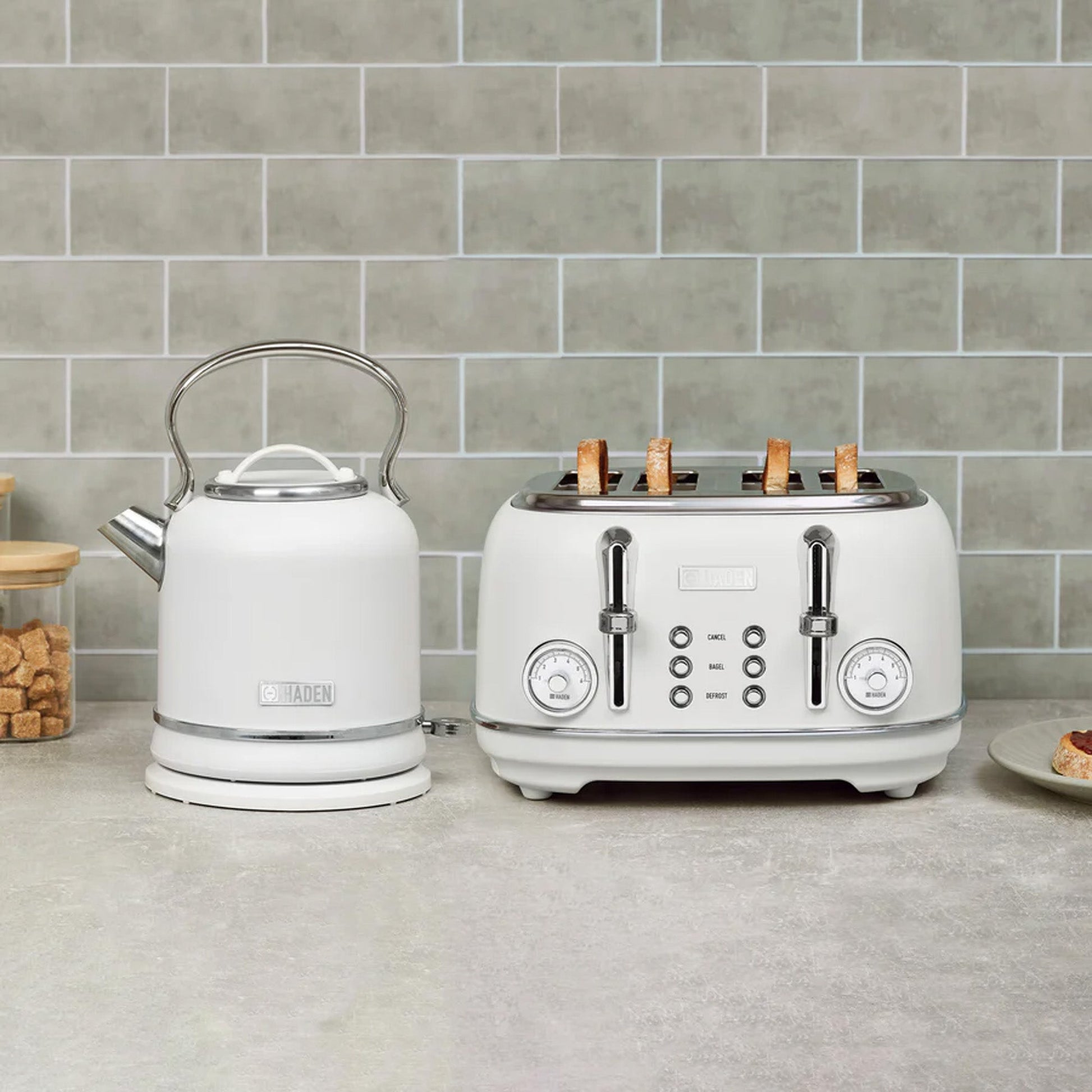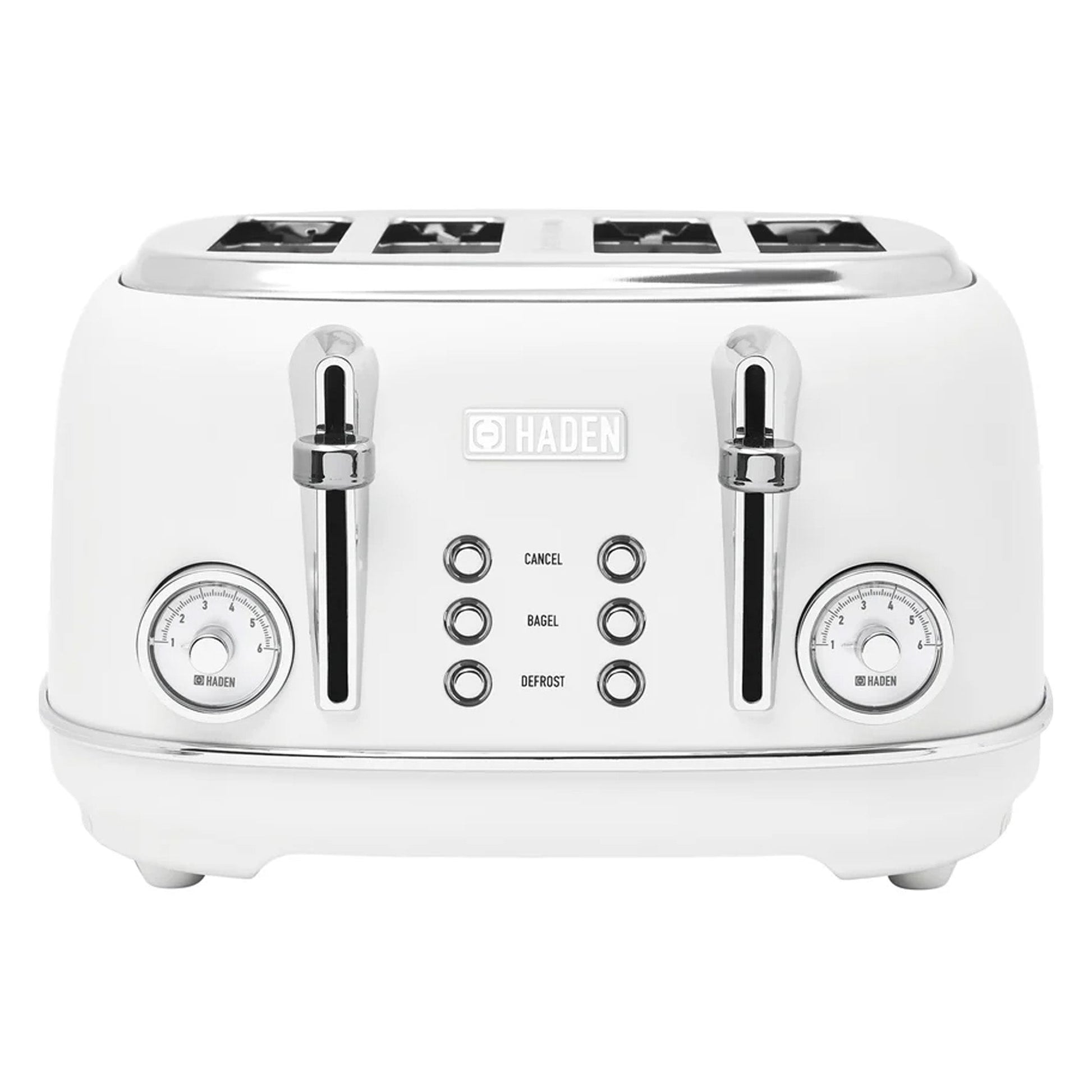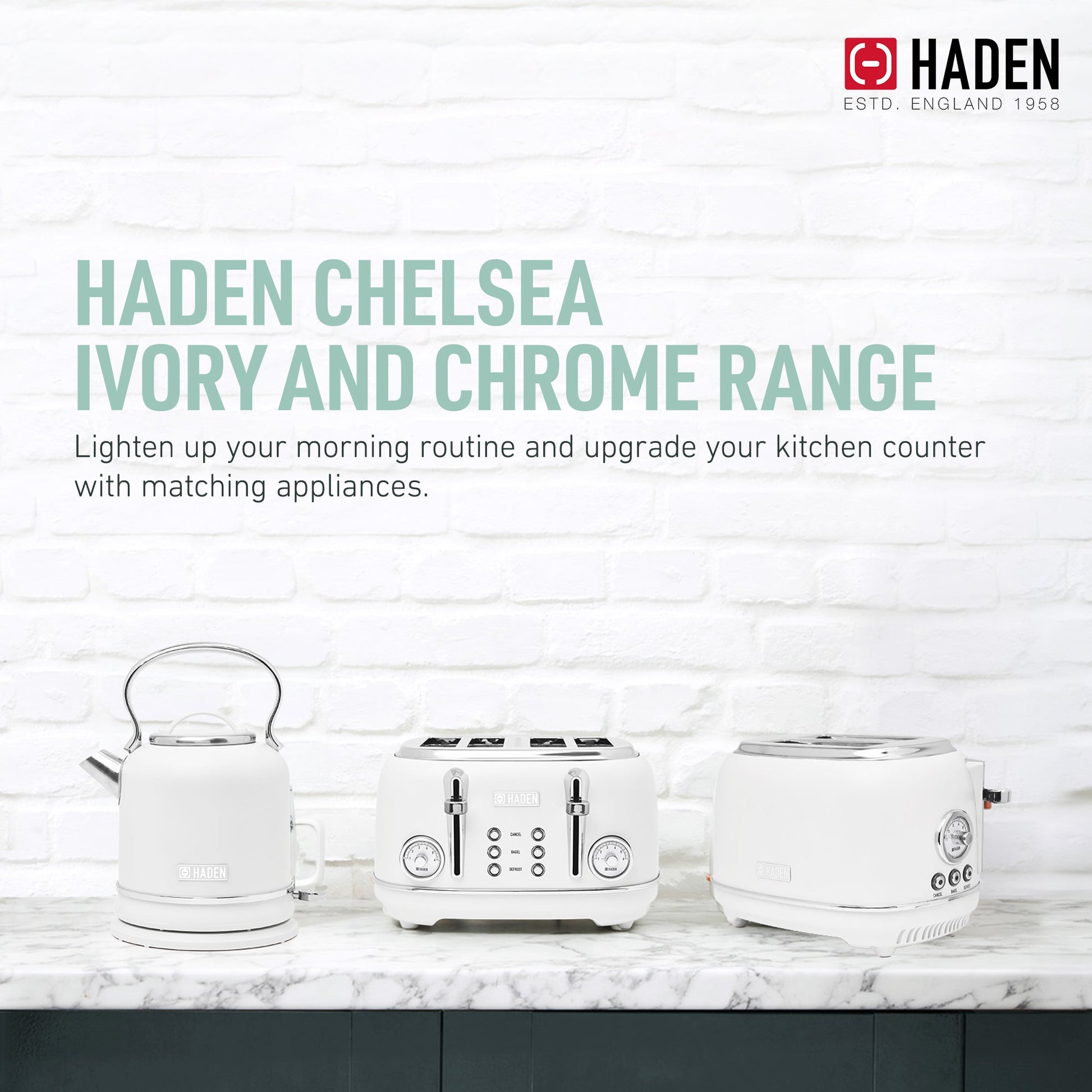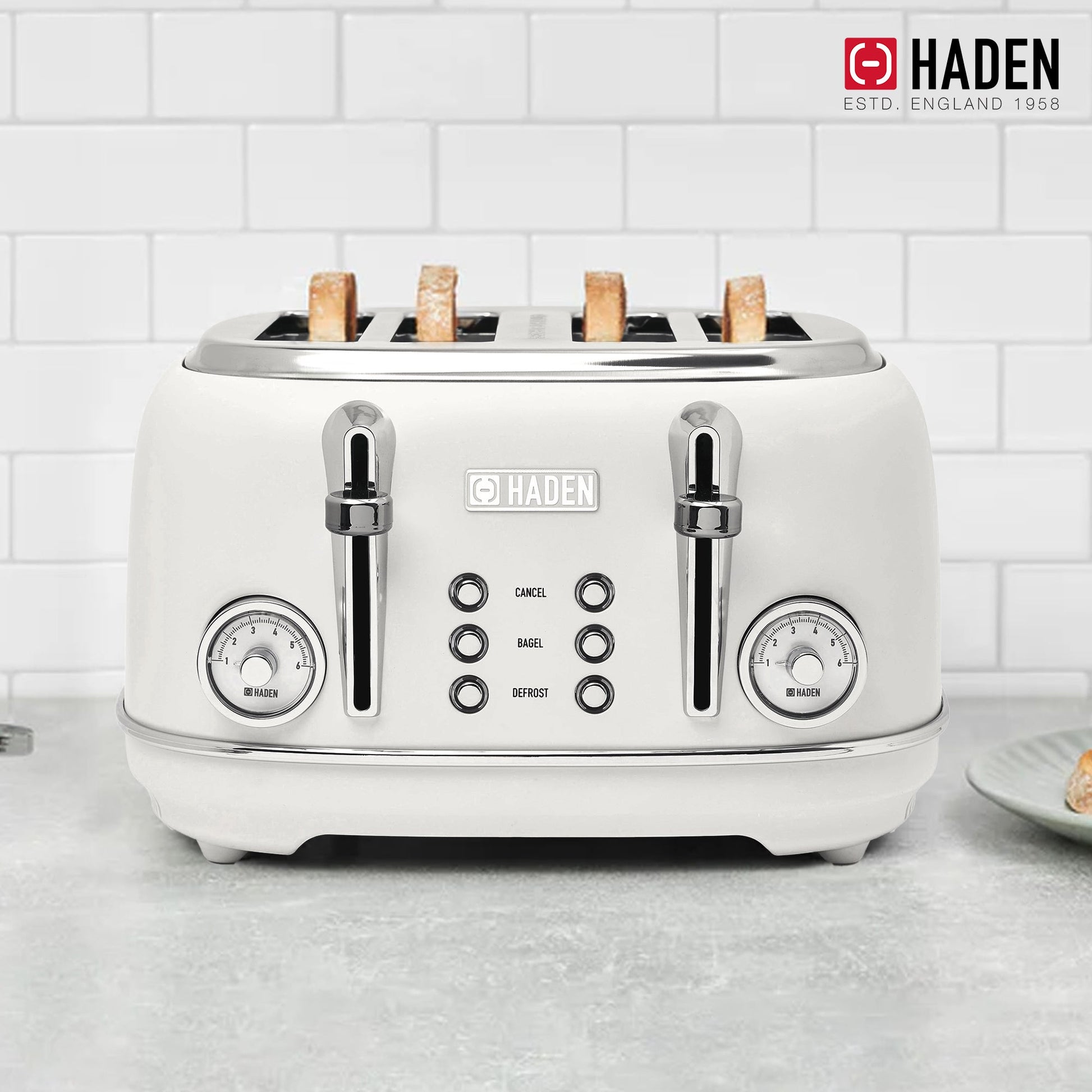 Haden Chelsea Stainless Steel 4 Slice Toaster, Extra Wide Slots, Ivory & Chrome