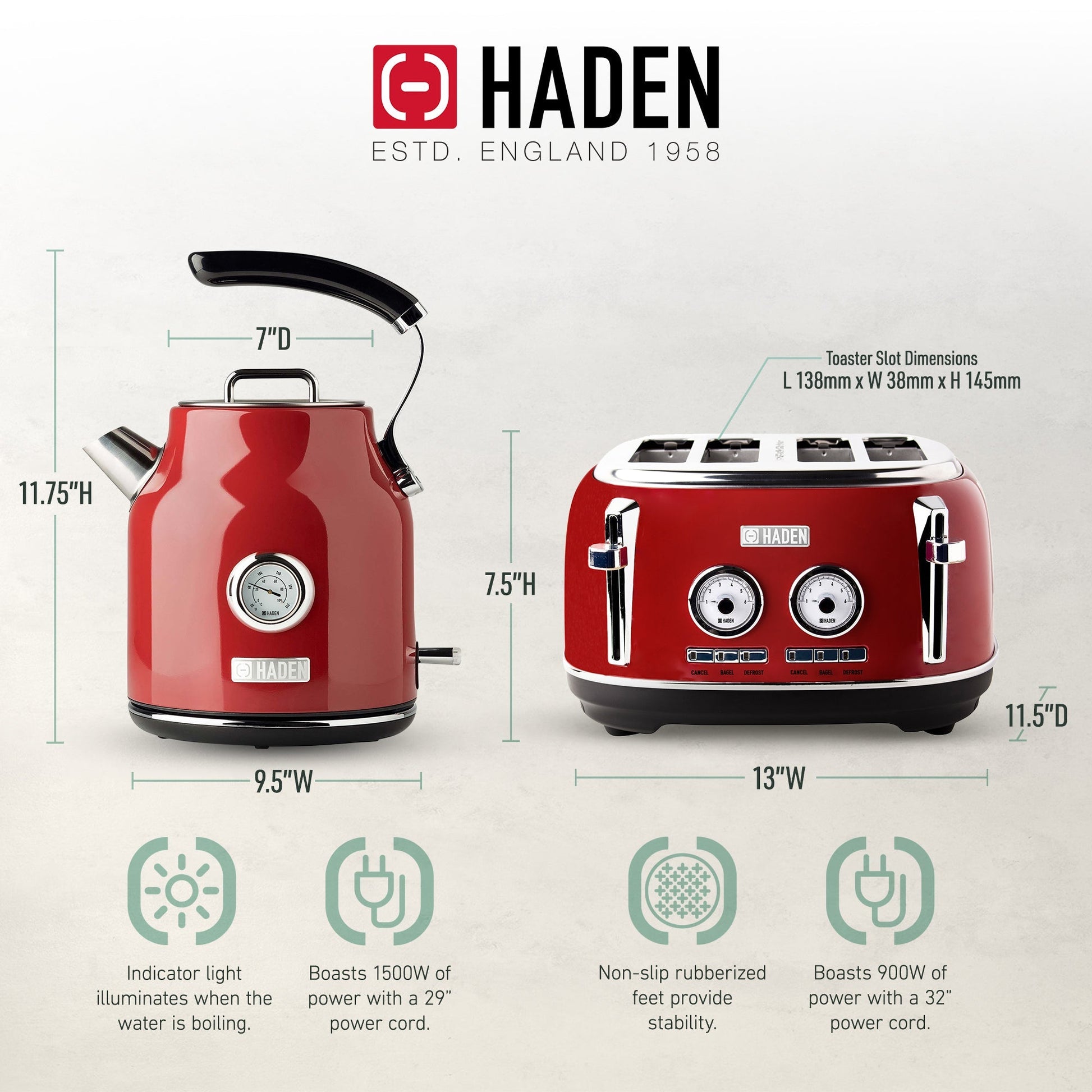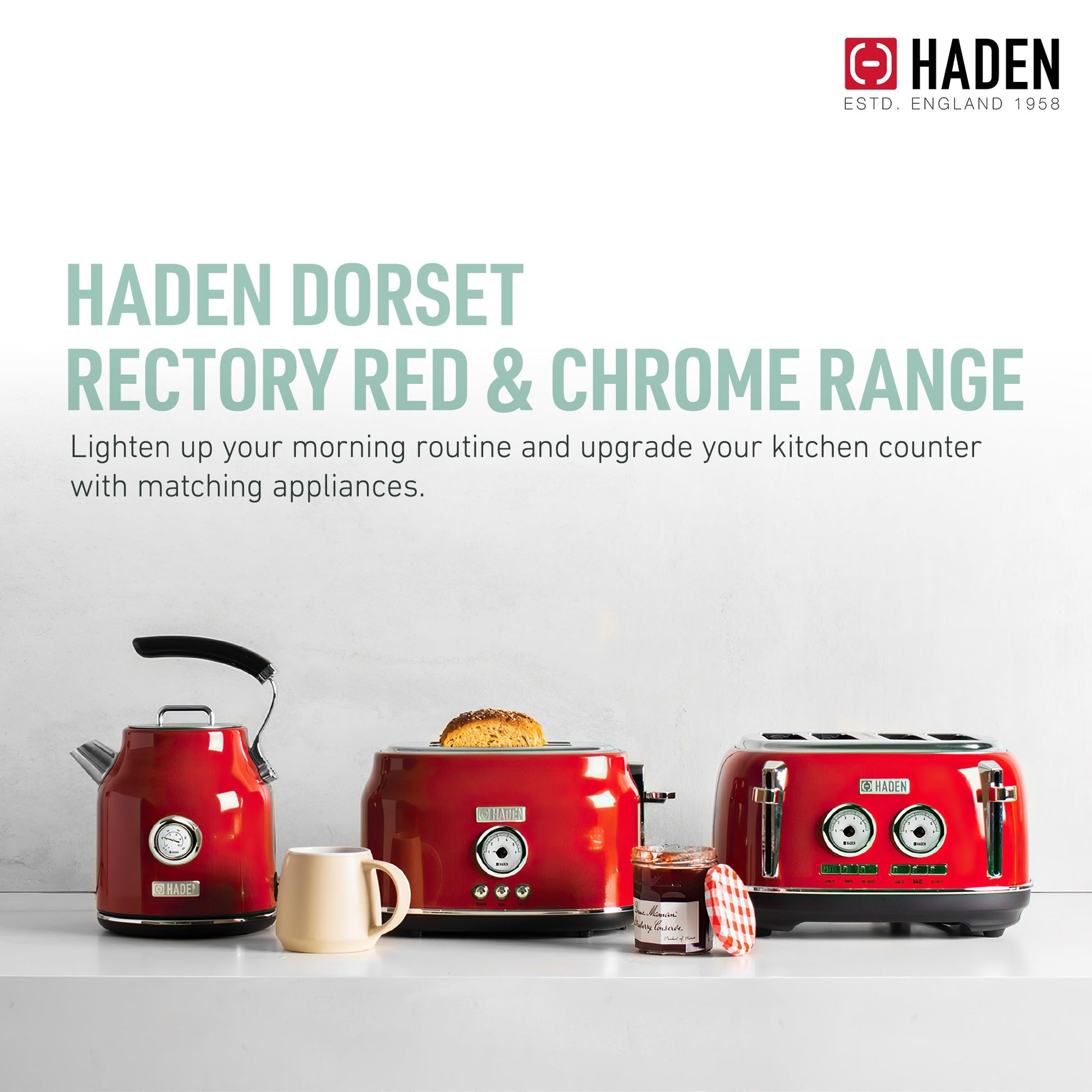 Haden Dorset 1.7 Liter Cordless Electric Kettle and 4 Slice Bread Toaster, Red