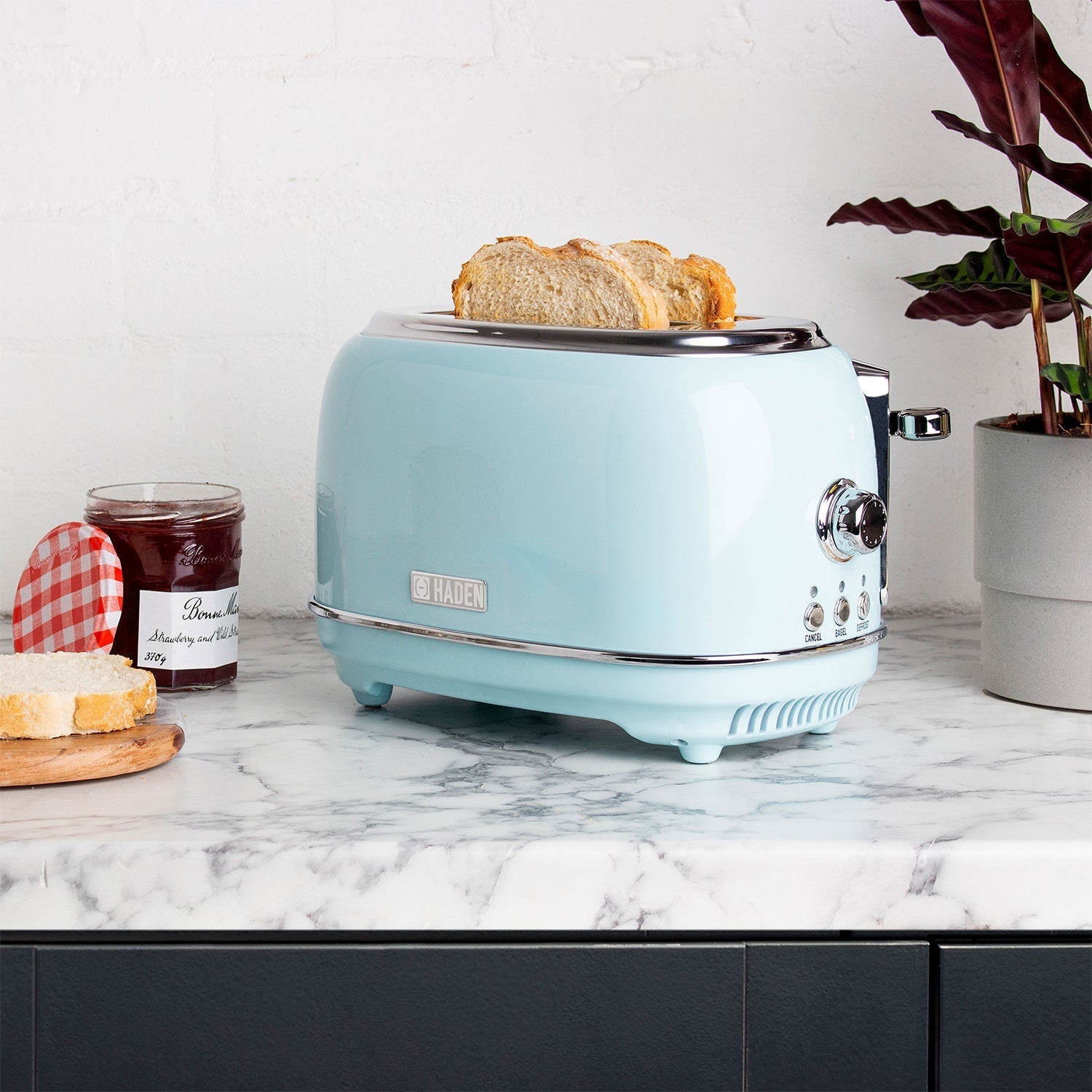 Built with extra-wide slots, this toaster does more than make crunchy toast. Cook thick slices of bread or your favorite bagel exactly how you like it by adjusting the variable browning control knob on this cutting-edge machine. Rest assured that your bread will be toasted deliciously every time with the self-centering function. This feature keeps bread in the ideal toasting position, ensuring even toasting. Upgrade your breakfast game and start each morning with the Haden Heritage toaster.