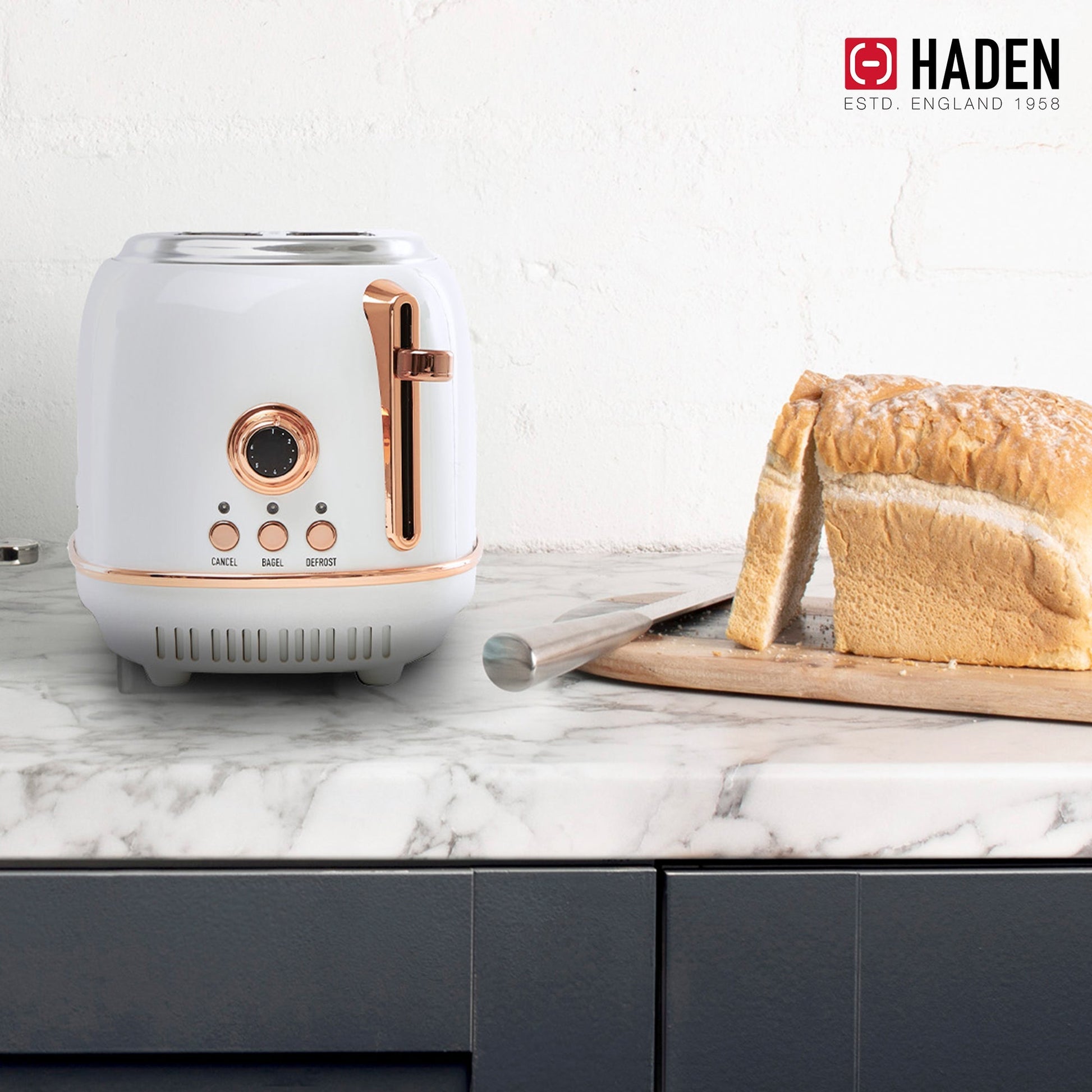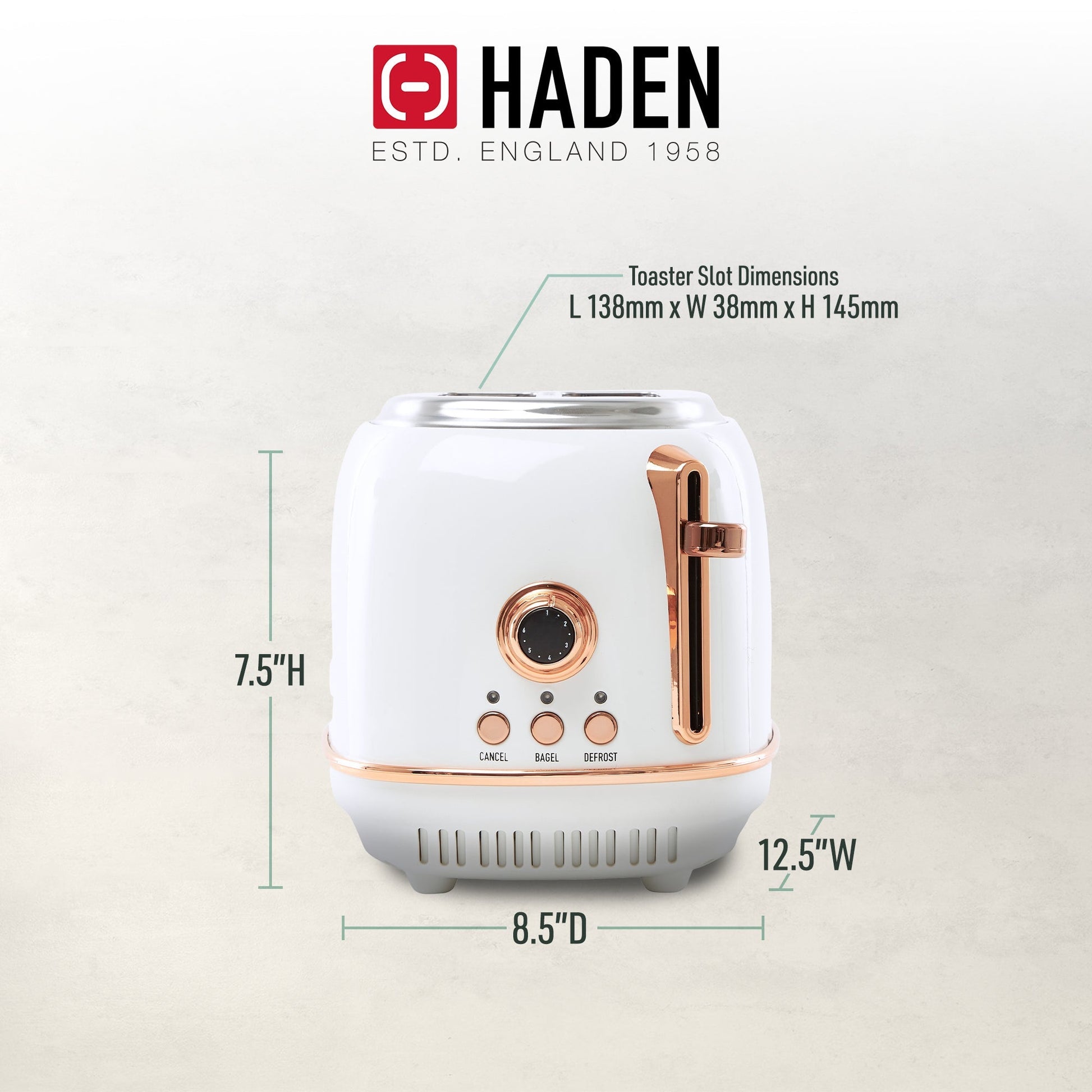 Haden Heritage 2 Slice Wide Slot Stainless Steel Toaster, Ivory & Copper