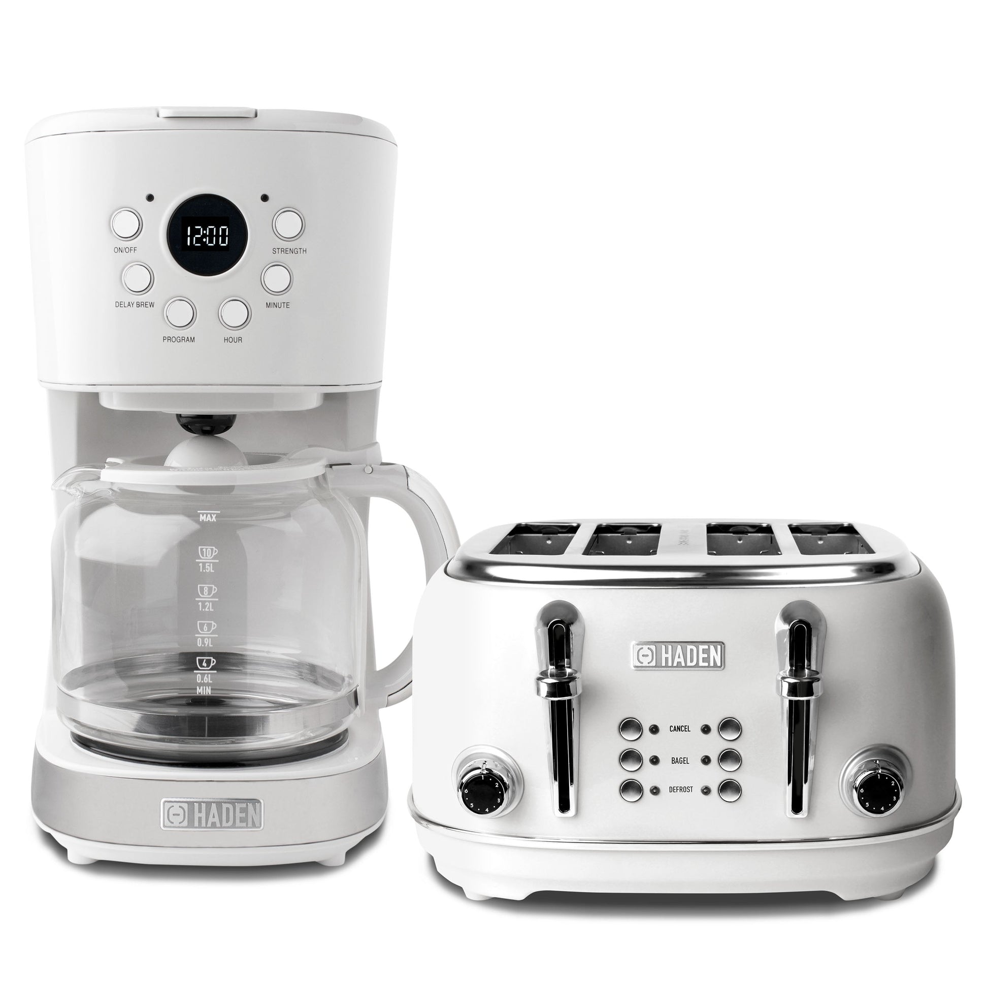 Haden Heritage 4 Slice Wide Slot Toaster & 12 Cup Coffee Maker, Ivory & Chrome