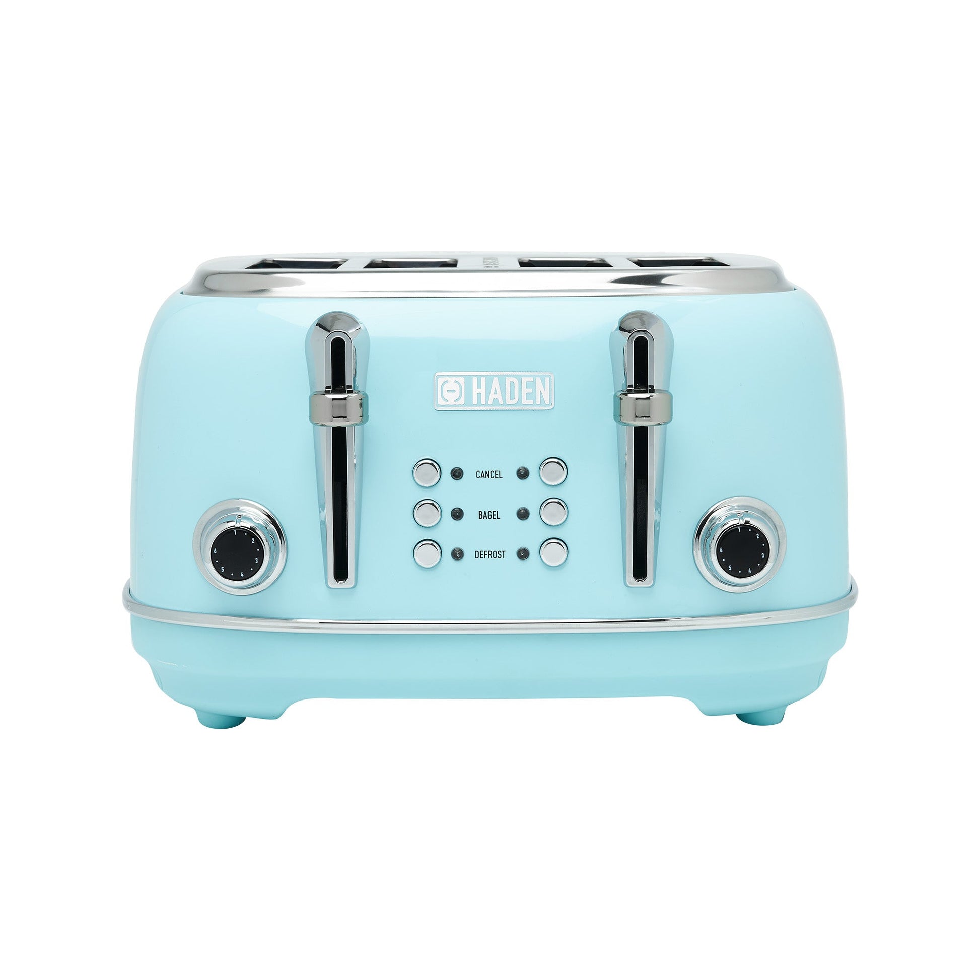 Haden Heritage 4 Slice Wide Slot Stainless Steel Toaster, Turquoise & Chrome
