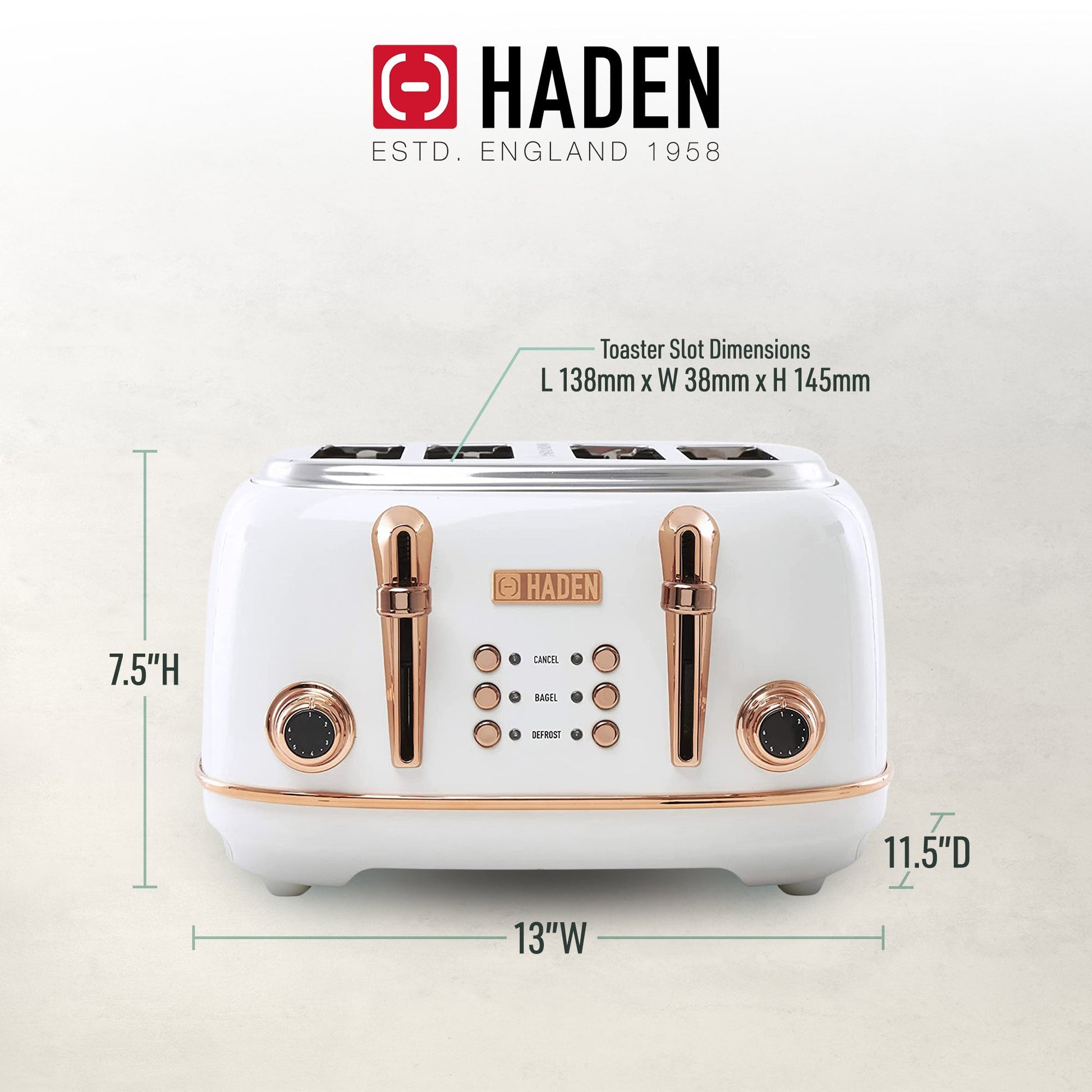 Haden Heritage 4 Slice Wide Slot Stainless Steel Toaster, Ivory & Copper