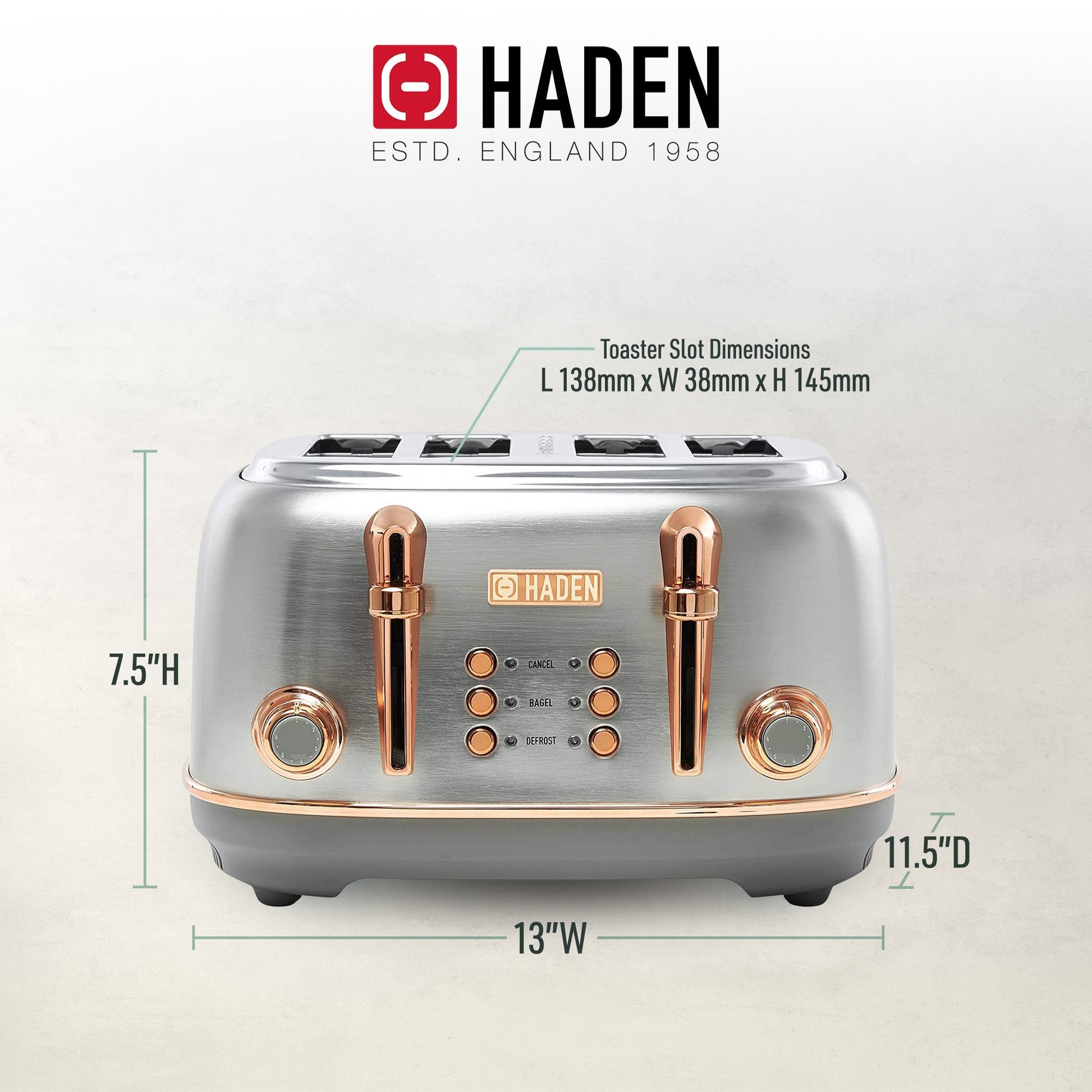 Haden Heritage 4 Slice Wide Slot Stainless Steel Toaster, Steel & Copper