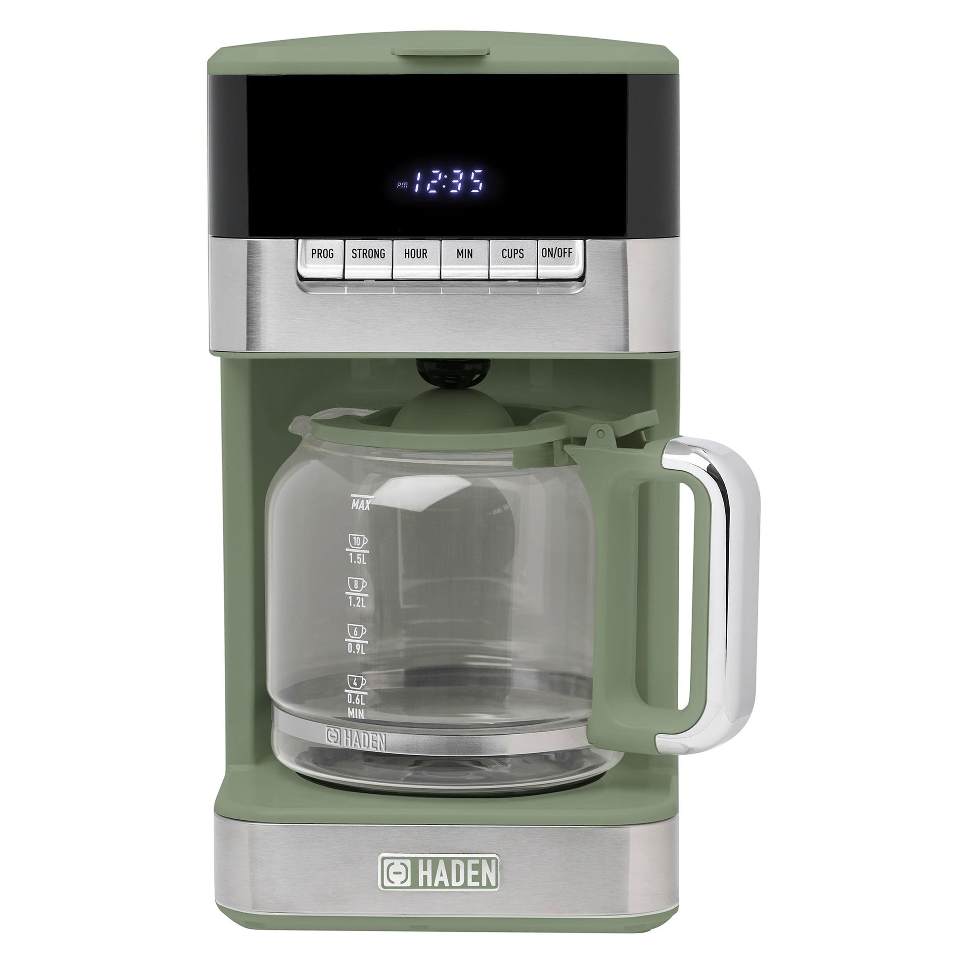 Haden Programmable Drip Coffee Maker, 12 Cup Cafe Machine & Carafe, Green/Chrome