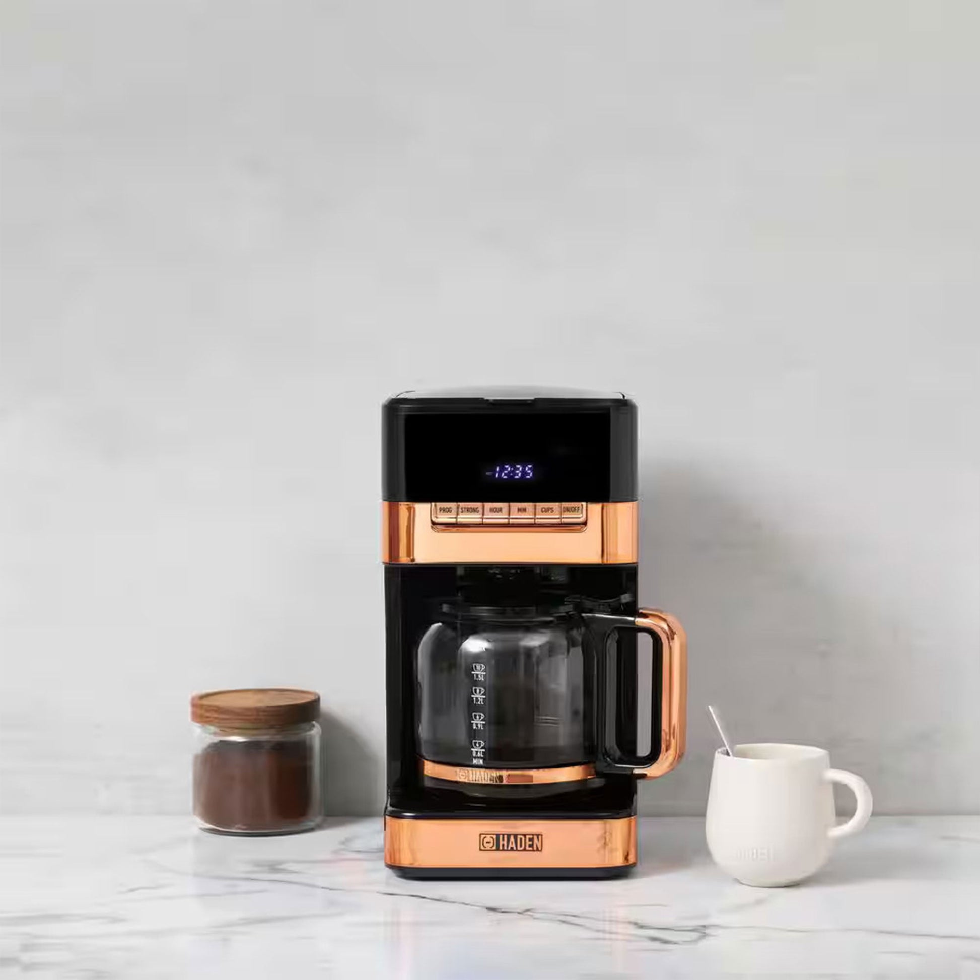 Haden Quintessential 12 Cup Programmable Digital Coffee Maker, Black/Copper
