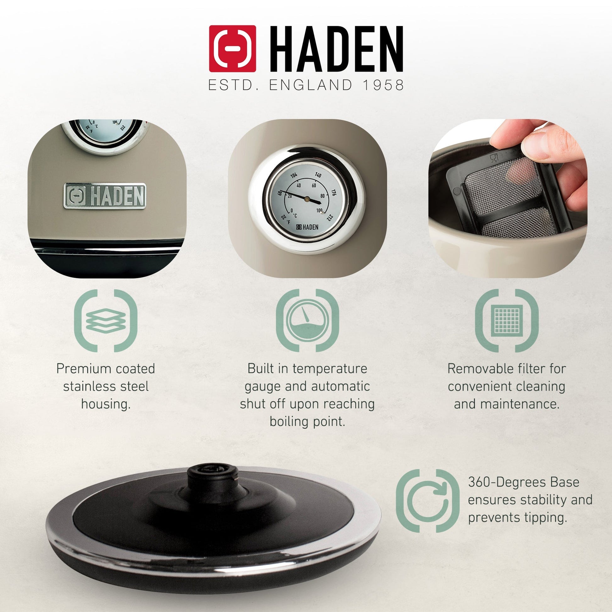 - Offering quintessential British designs, Haden creates elegant appliances with innovative technology, and is trusted by customers as the Go-to British Breakfast Brand. Taking inspiration from British homes, architecture, and landscapes, Haden embodies a perfect balance between form and function.