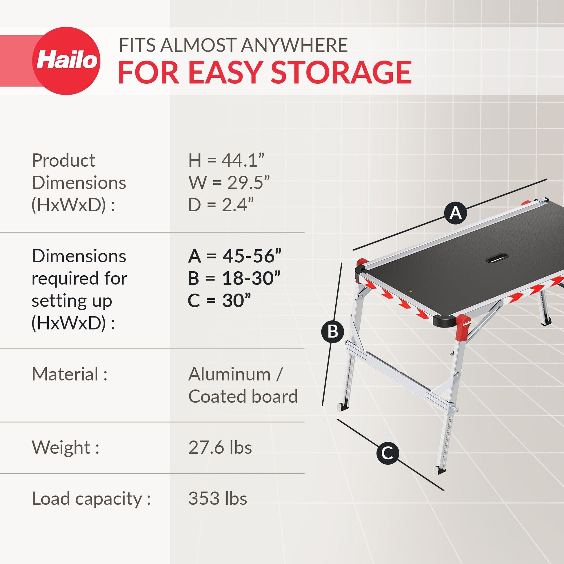 Hailo Adjustable Aluminum Work Platform TP2 Plus for Ladders & Stairs, Foldable
