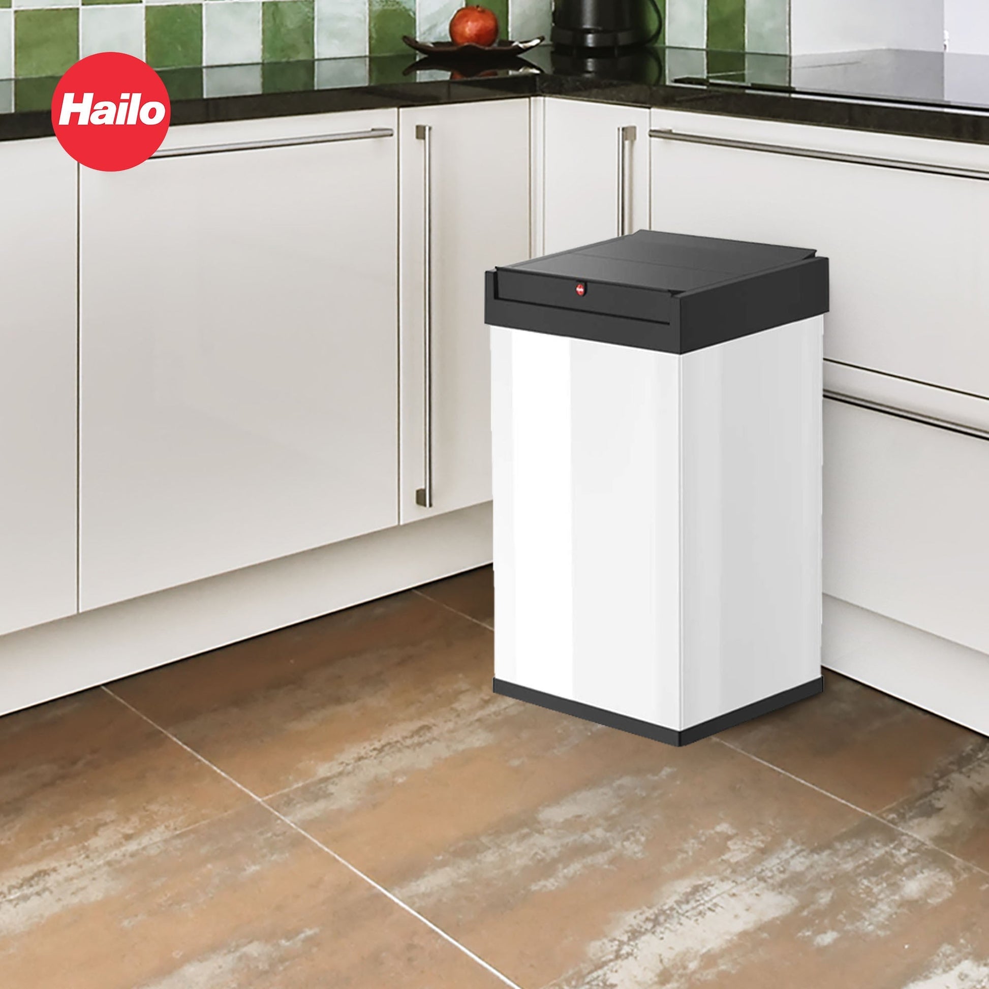 Upgrade your home or office with the Hailo Big-Box Swing Trash Bin, a perfect blend of style, functionality, and durability. With a spacious 9.2-gallon capacity, this bin is ideal for managing waste in the kitchen, bathroom, bedroom, or office. Its sleek white sheet steel body and contrasting black plastic lid offer a modern aesthetic that effortlessly complements any decor while maintaining practicality.