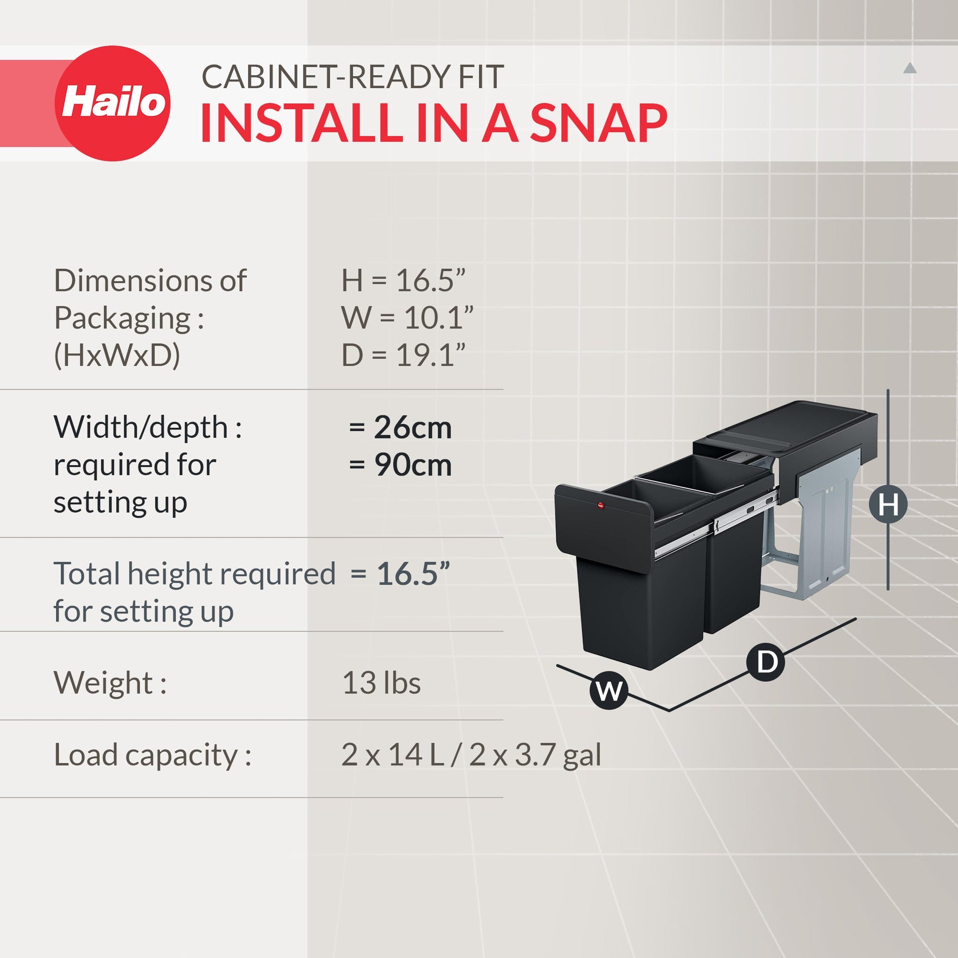 Elevate your kitchen organization and waste management with the Hailo EcoLine Design L. Enjoy the convenience of a built-in, pull-out system that seamlessly integrates into your cabinetry, all while contributing to a more sustainable lifestyle.