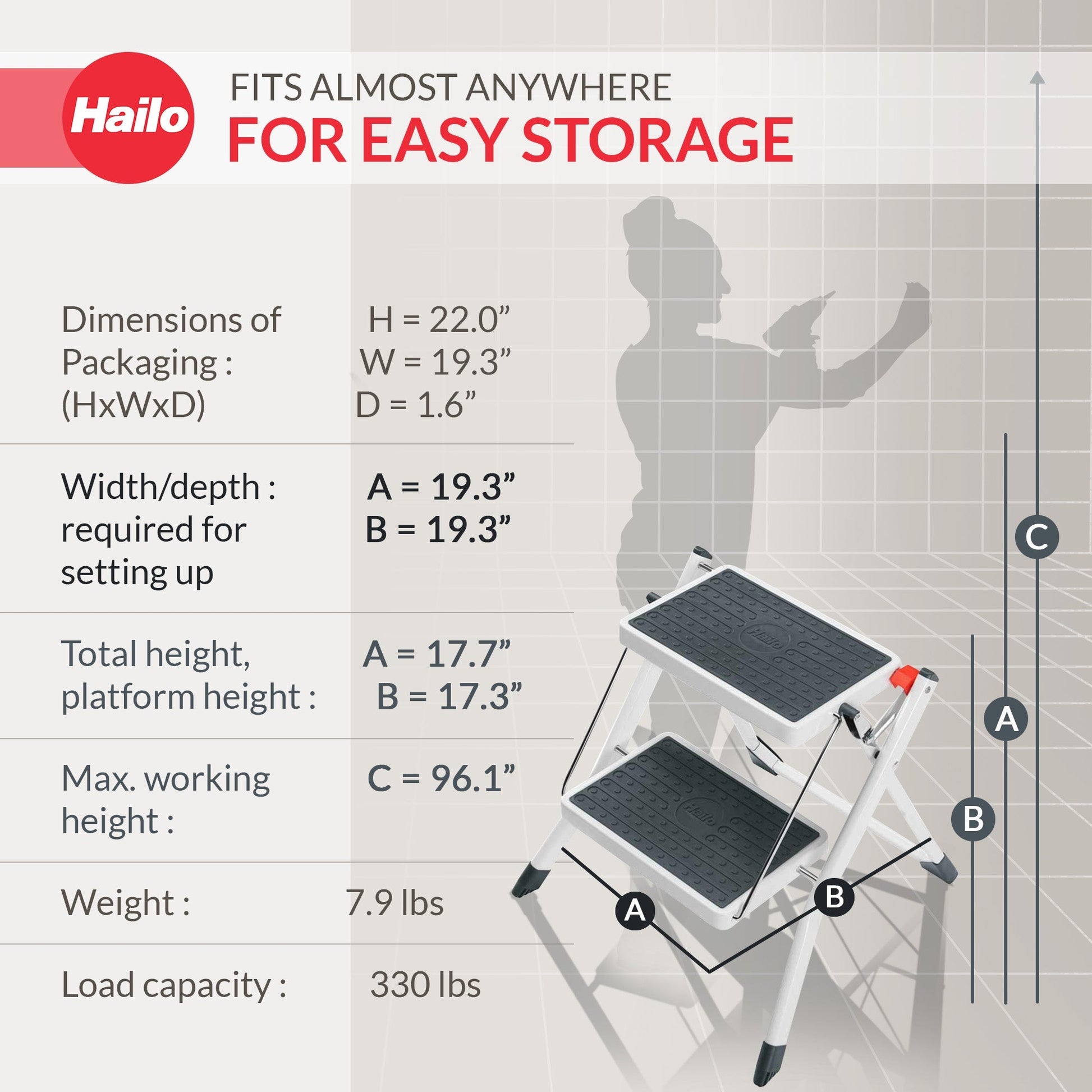 Boasting a sturdy steel construction and a sleek white finish, the Hailo MK60 is built to last. With a maximum weight capacity of 330 lbs, this step stool can easily support even the heaviest of users, ensuring reliable stability and peace of mind. The two large anti-slip steps provide excellent traction, preventing any unwanted slips or falls, and meeting the rigorous EN 14183 safety standards.